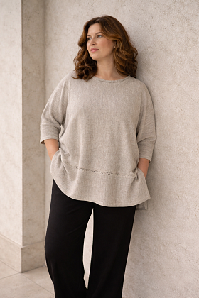 Описание: Джемпер, длинный рукав, линия плеча спущена, воротник стойка, трикотаж