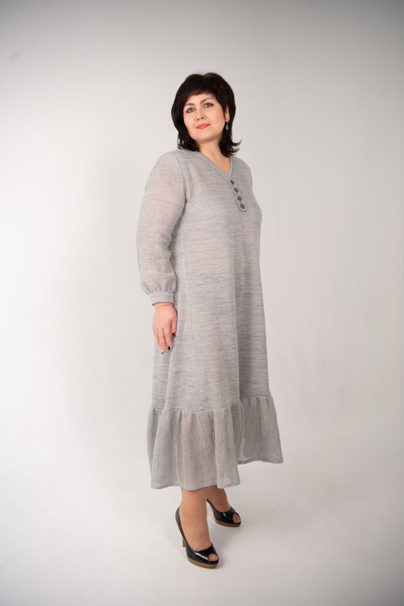 Описание: Платье с длинным рукавом на сборке, внизу оборка, отделка, трикотаж. 58 размер 119см, рукав 59см.