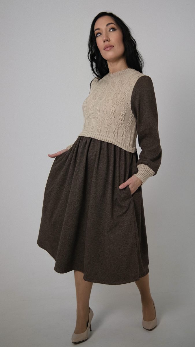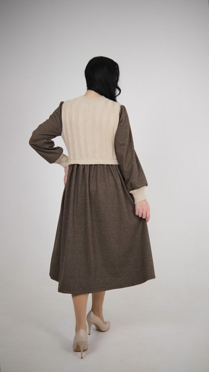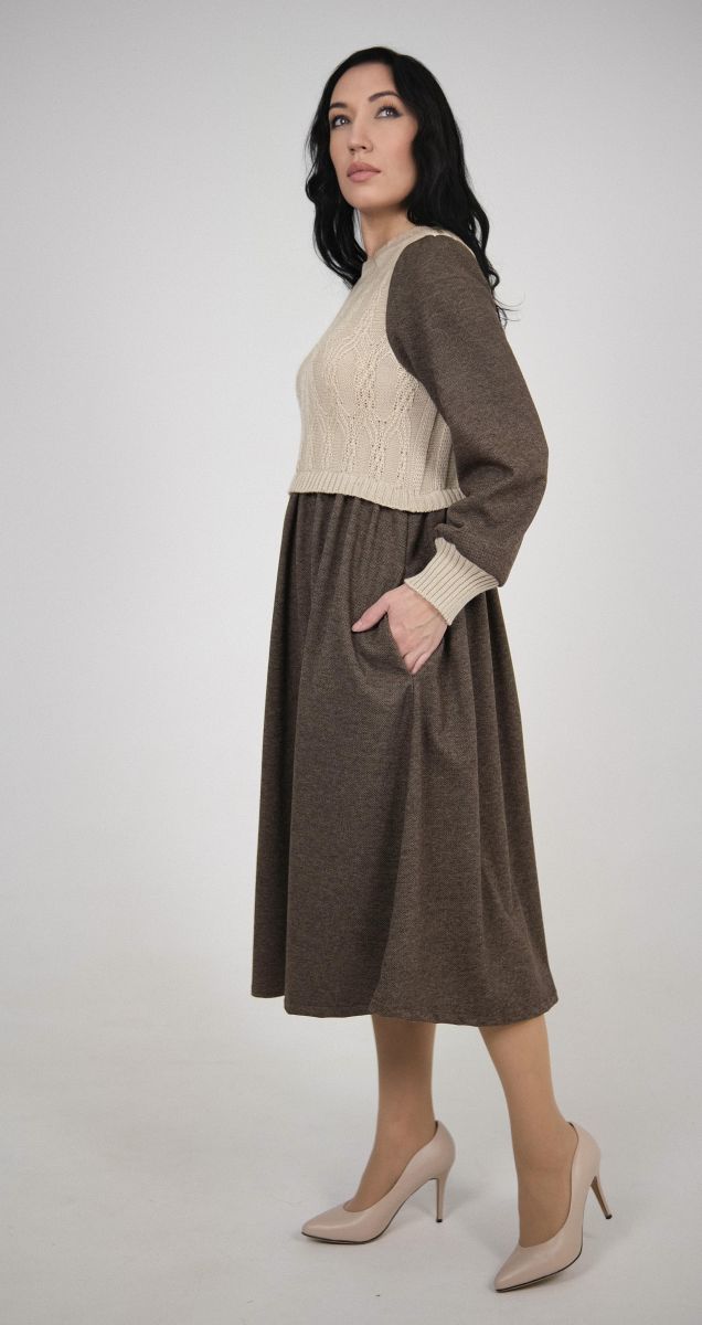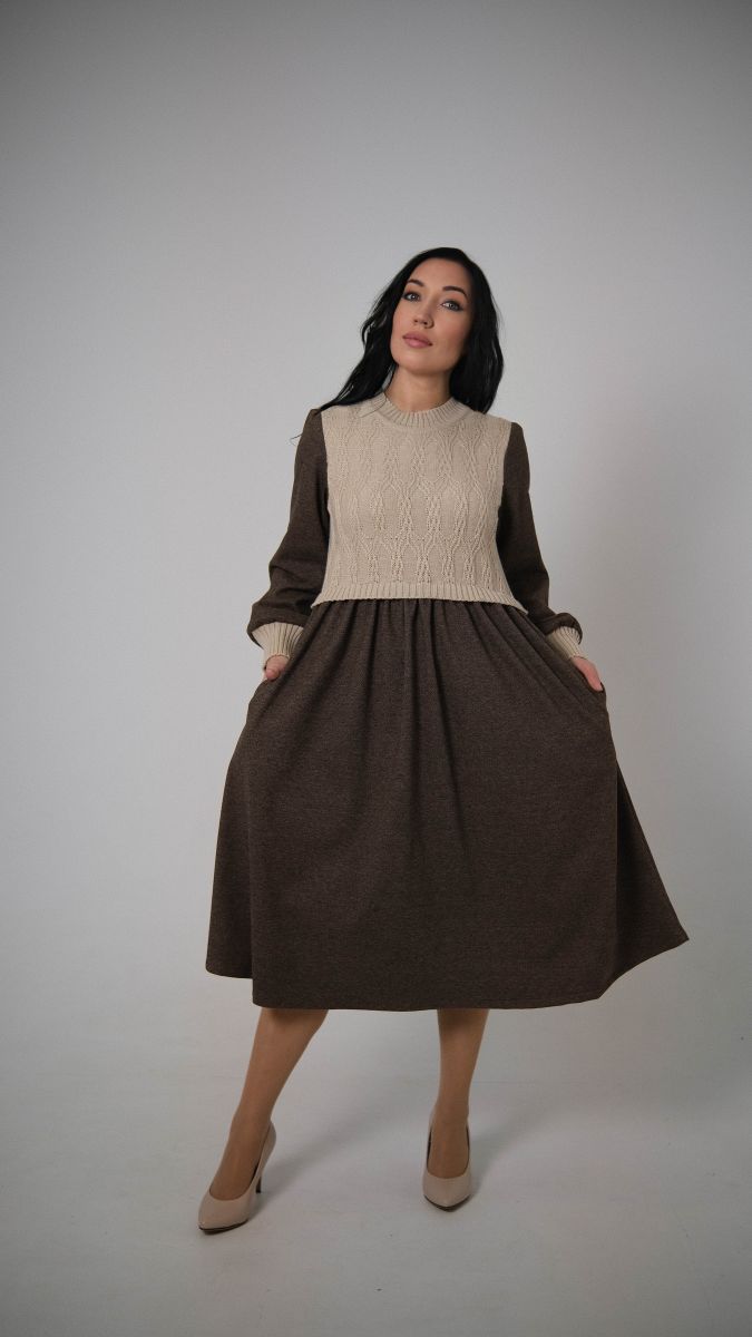 Описание: Платье, трикотаж, с тканью, лен + п/шерсть, 15% шерсть, 35% вискоза, 50% полиэстер
