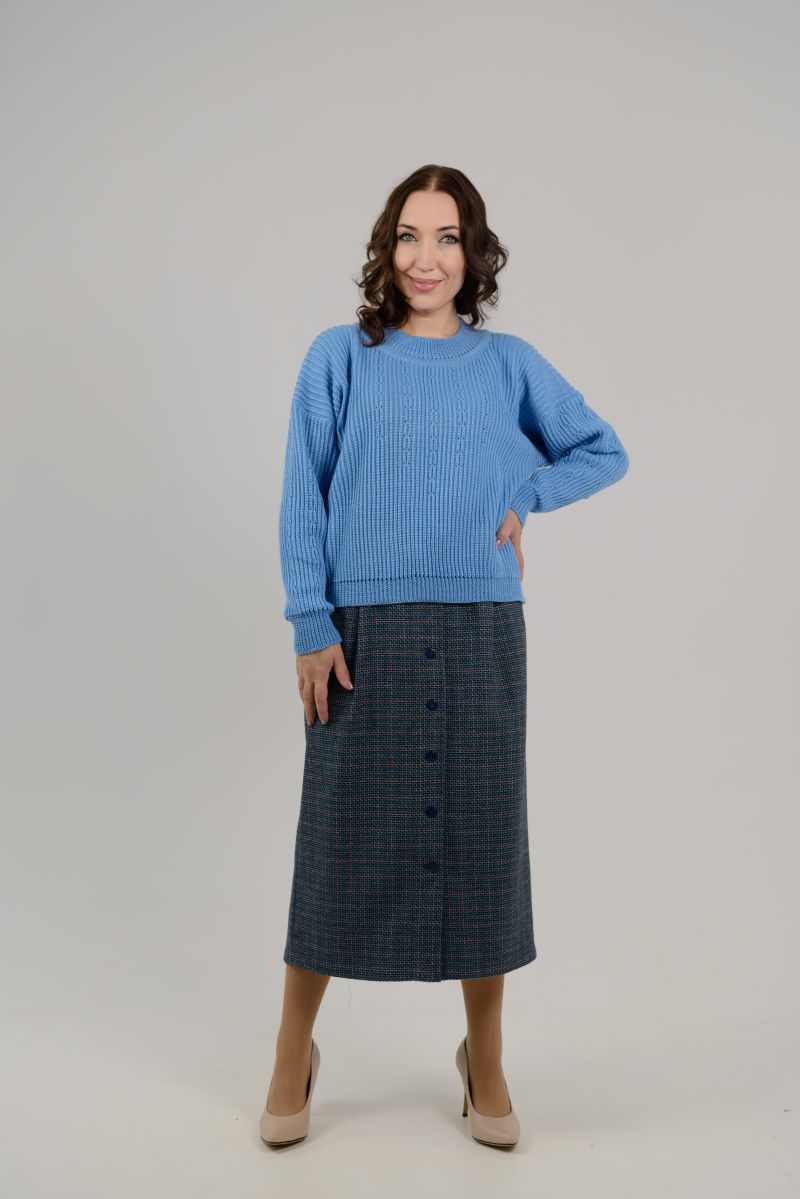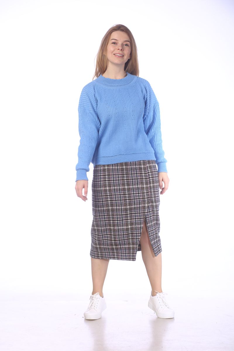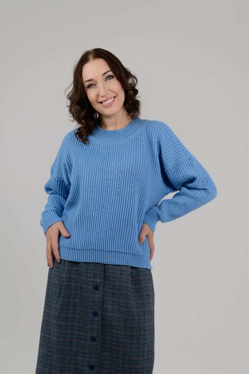 Описание: Джемпер с длинным рукавом, линия плеча спущена, воротник стойка, трикотаж