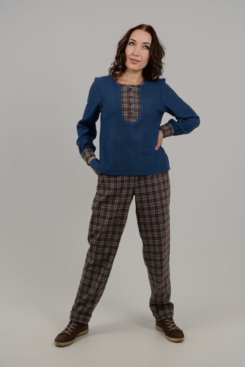 Описание: Джемпер-блуза с длинным рукавом на манжете, отделка ткань, трикотаж.