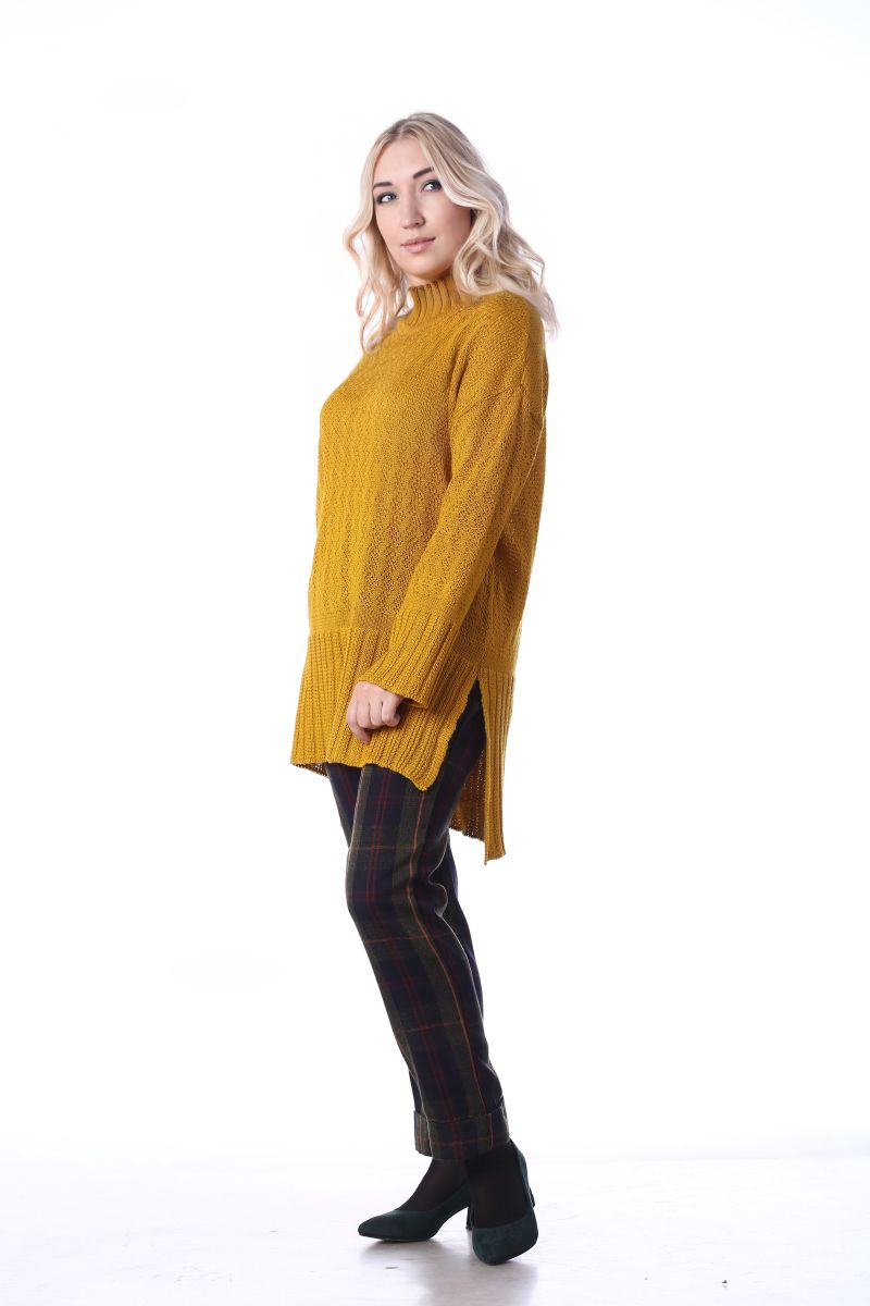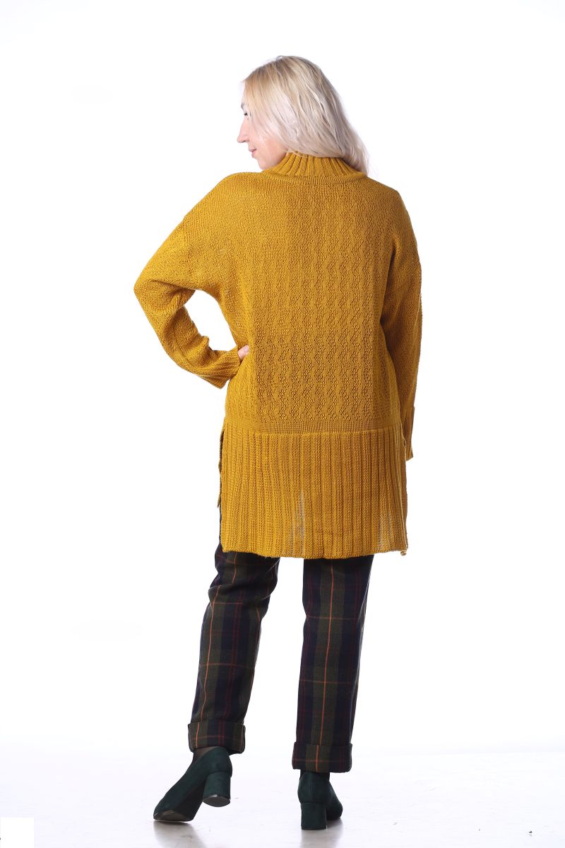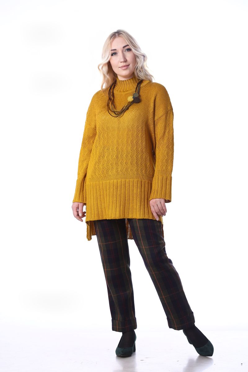 Описание: Джемпер свободного силуэта, удлиненная спинка, линия плеча спущена, по бокам разрезы, трикотаж