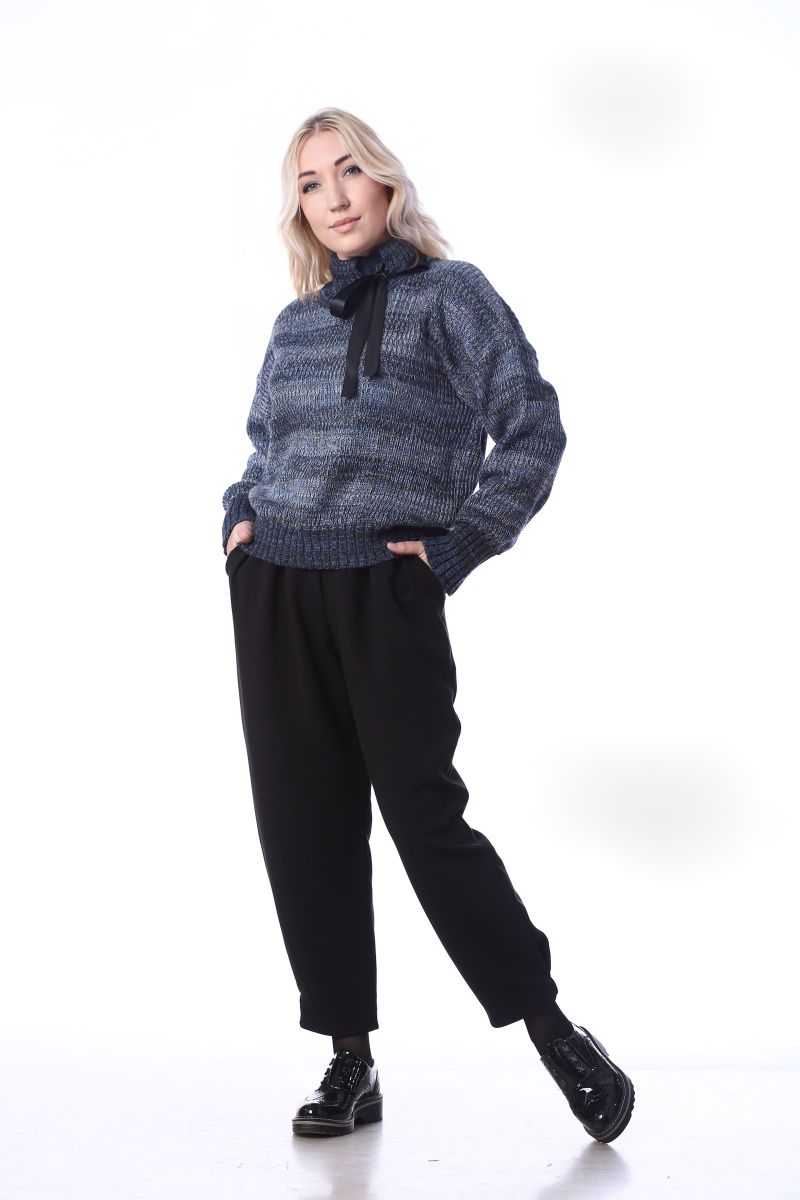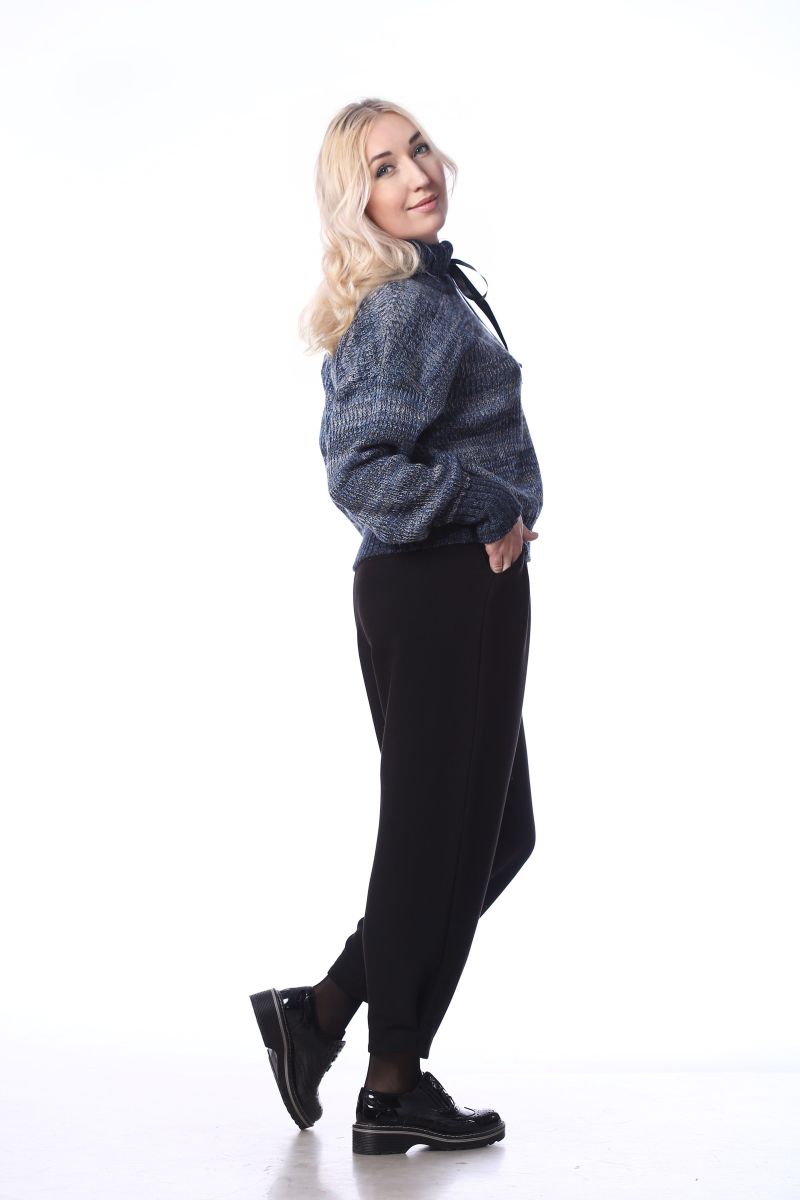 Описание: Джемпер с длинным рукавом, линия плеча спущена, воротник с бантом, трикотаж, 46 размер 57см, рукав 70см.