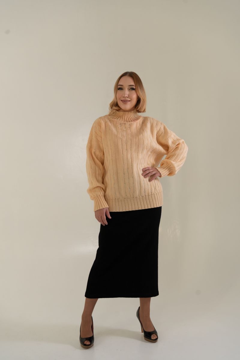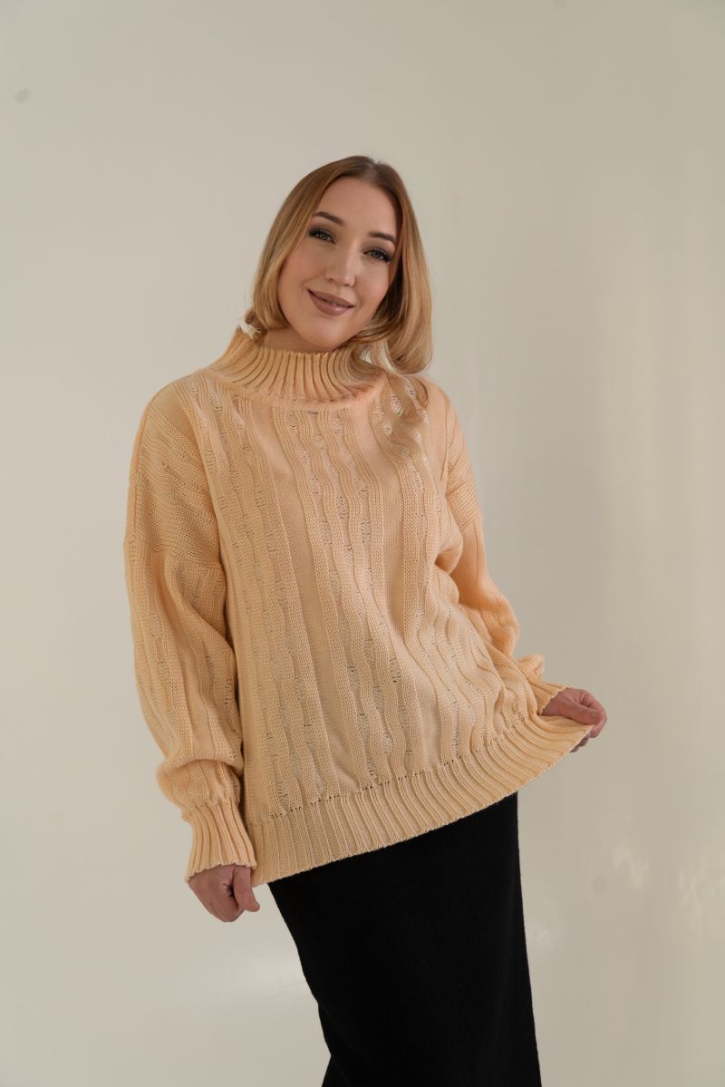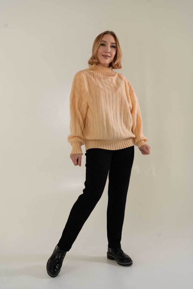 Описание: Джемпер, длинный рукав, линия плеча спущена, воротник стойка, трикотаж