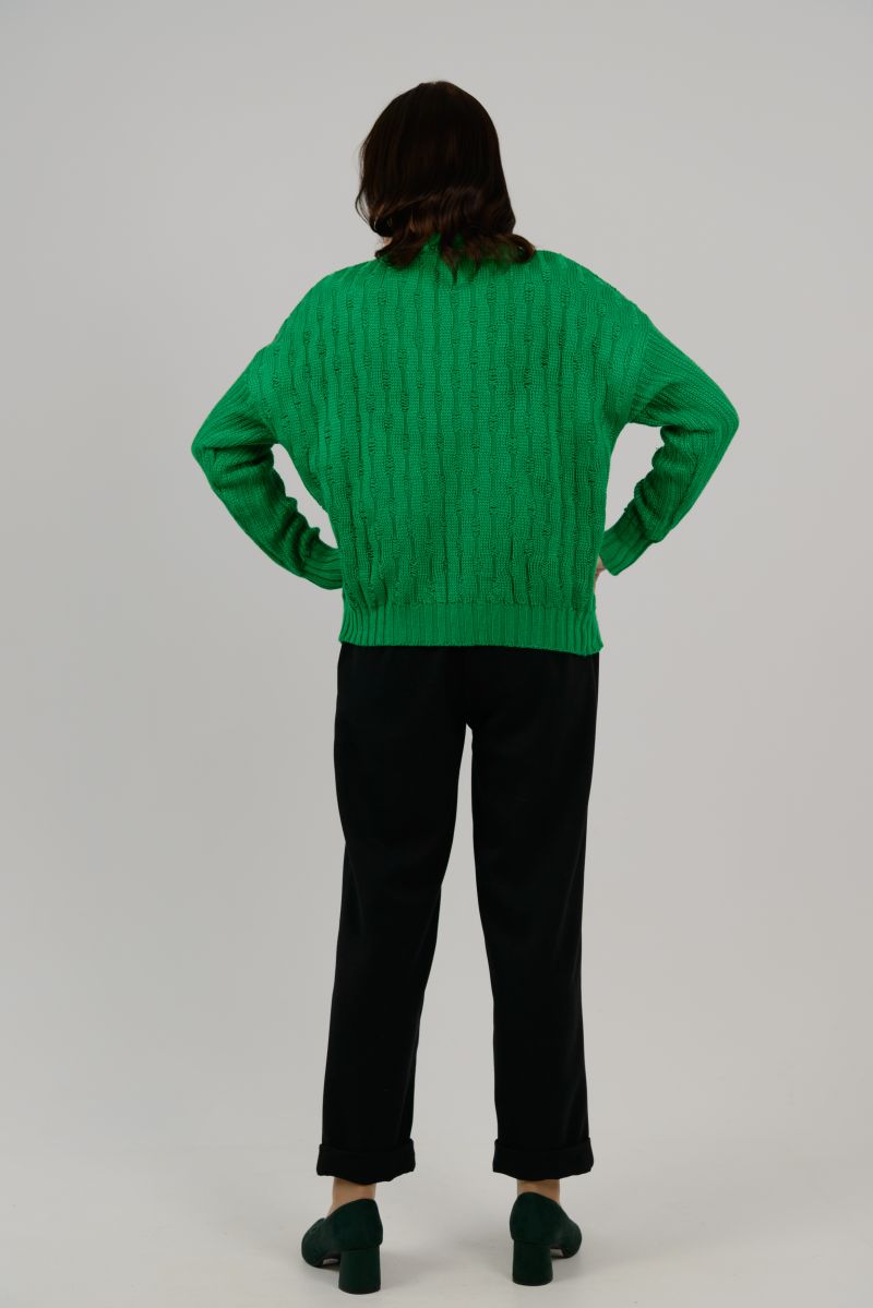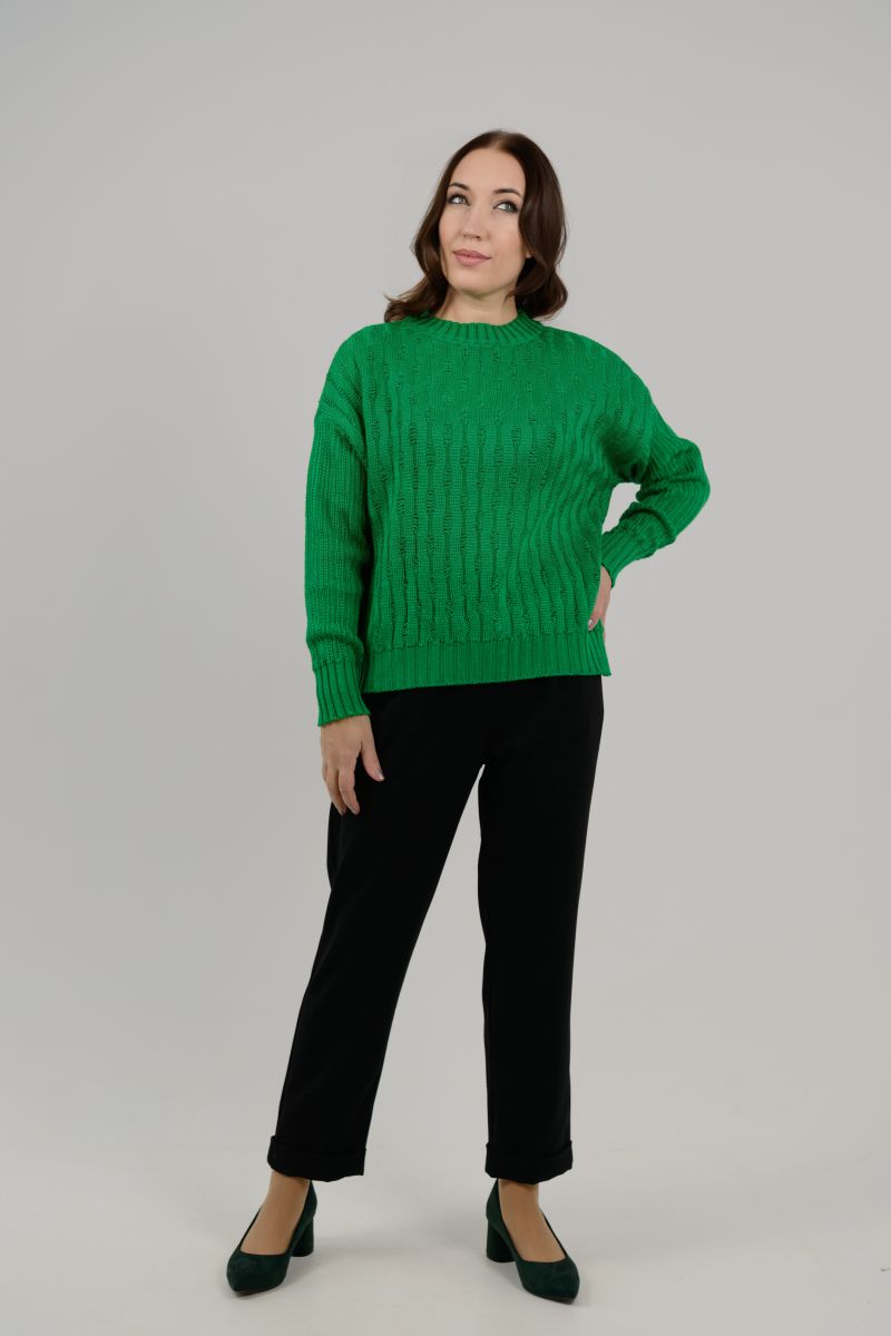 Описание: Джемпер с длинным рукавом, линия плеча спущена, воротник невысокая стойка, трикотаж.