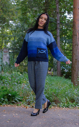 Описание: Джемпер с отделкой, трикотаж, 54 размер 61см, рукав с плечом 52см.