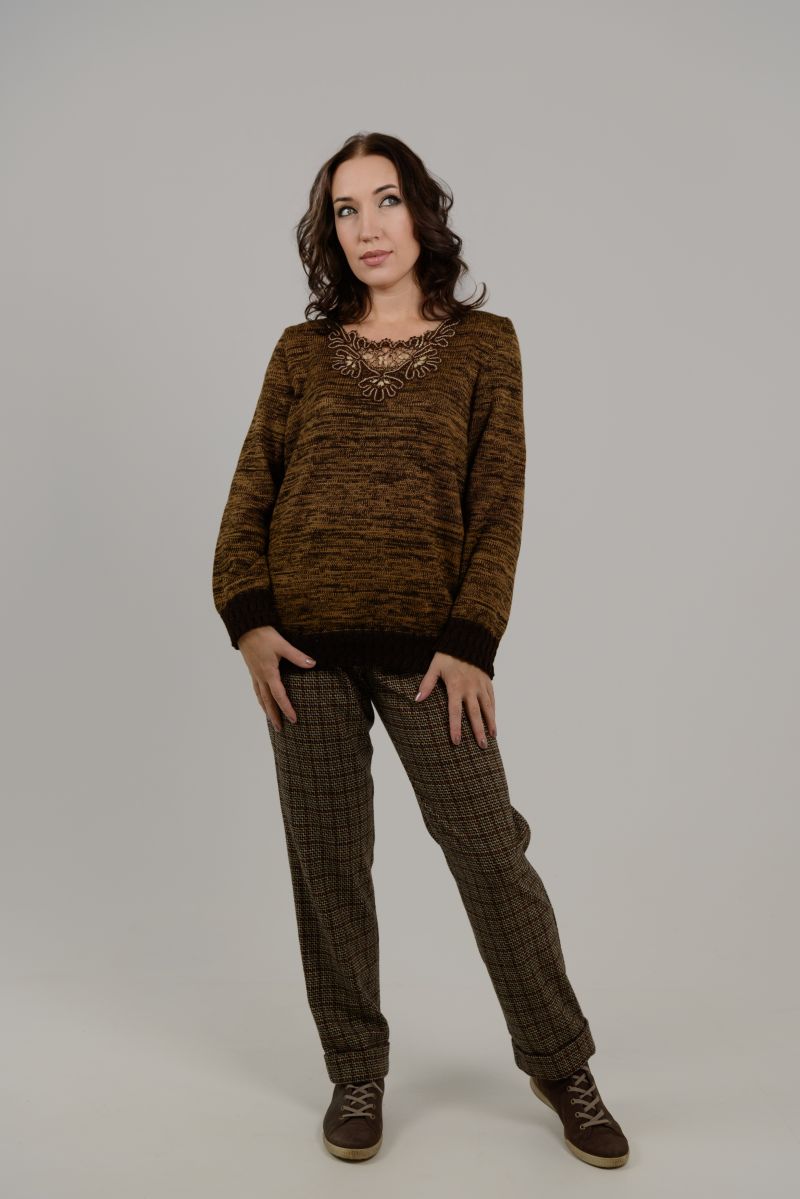 Описание: Джемпер с кружевом, длинный рукав, трикотаж меланж, внизу резина.