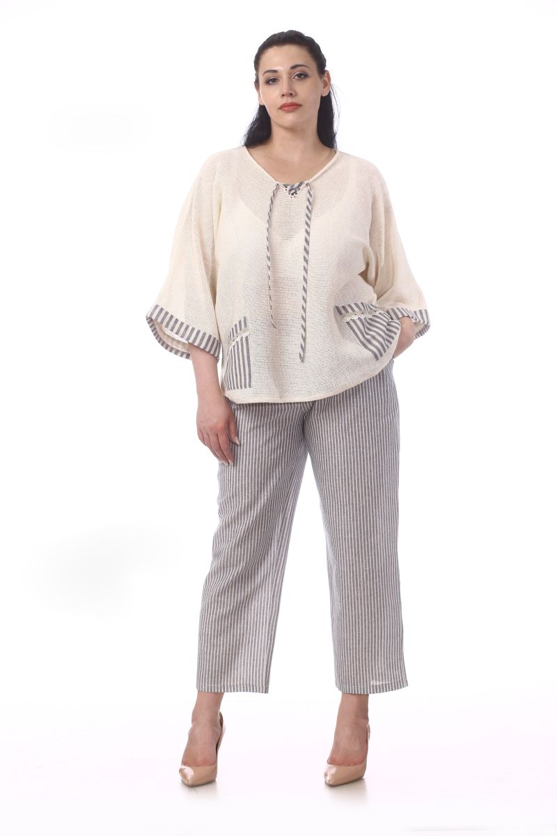 Описание: Джемпер с карманами, отделка ткань лен, трикотаж