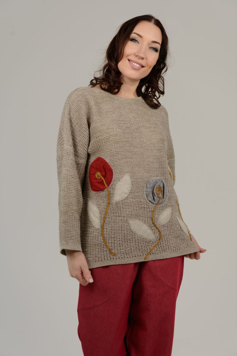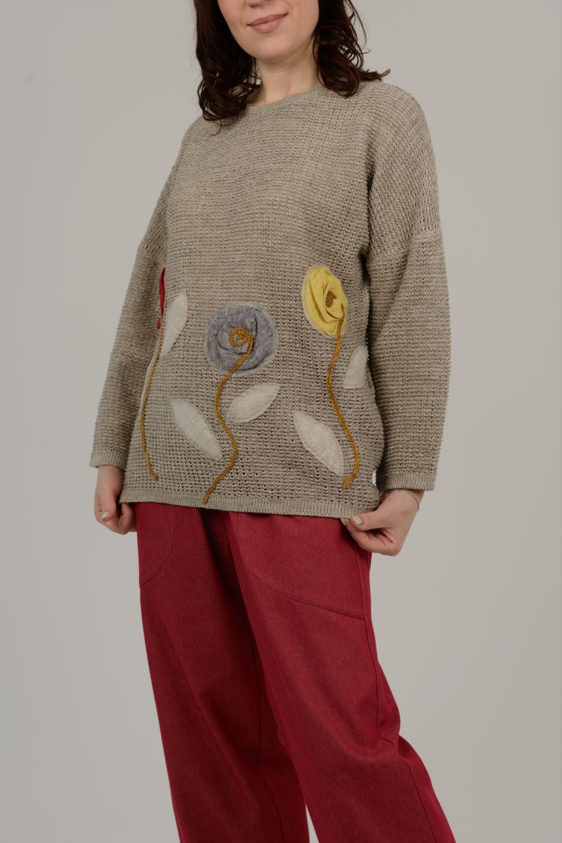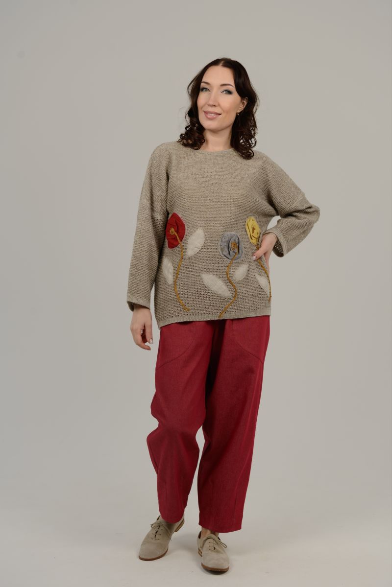 Описание: Джемпер с длинным рукавом, линия плеча спущена, отделка, трикотаж.