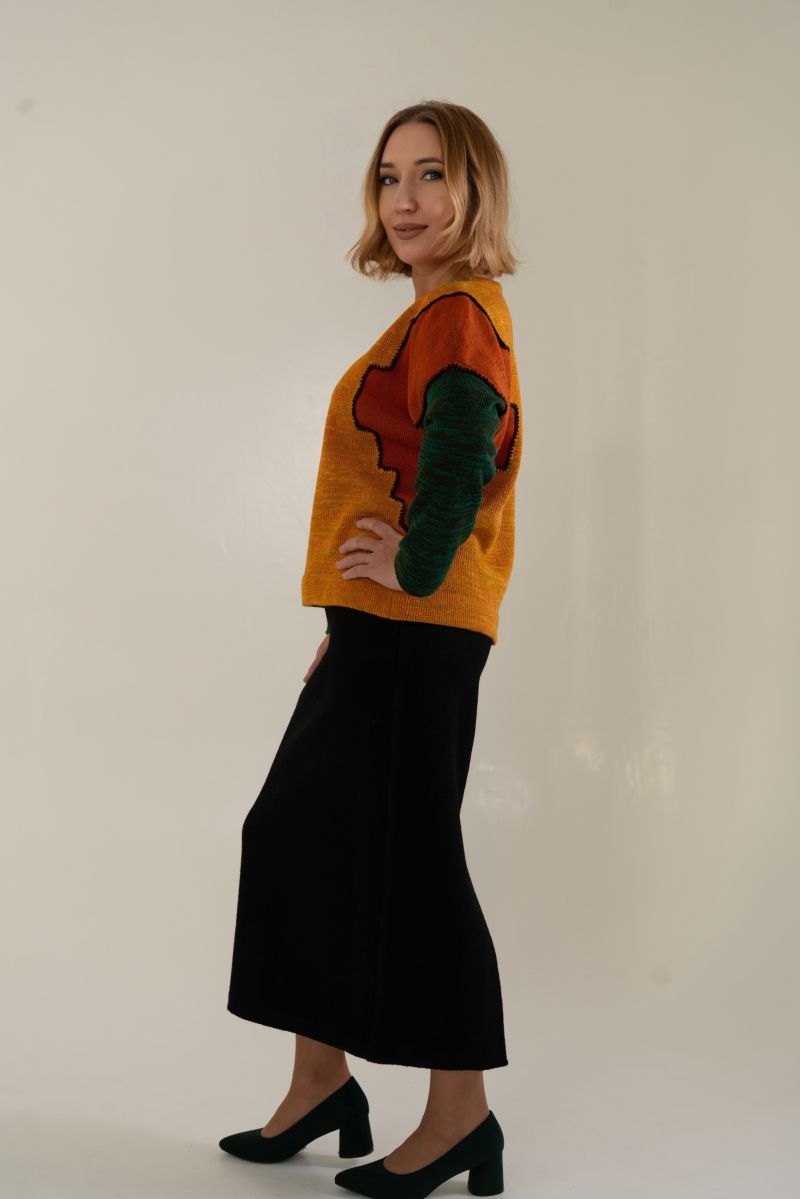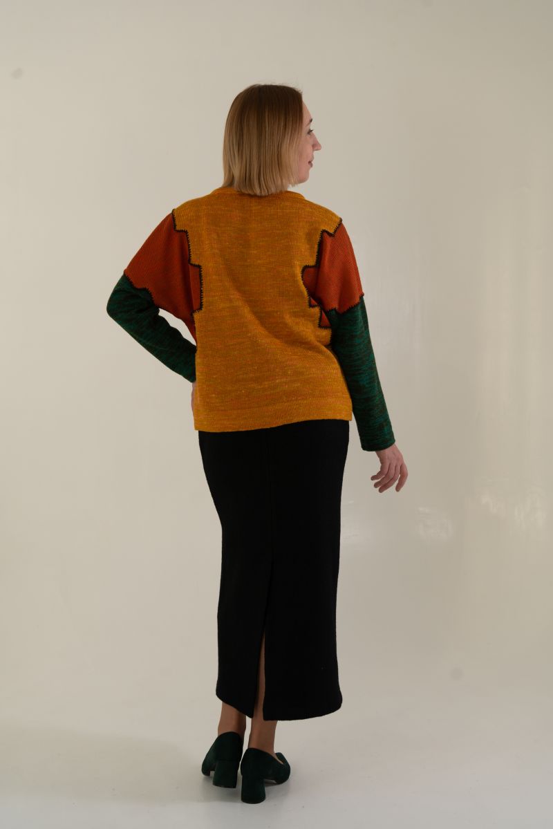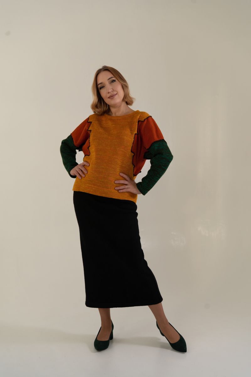 Описание: Джемпер с длинным рукавом, многоцветный трикотаж, 46 размер 56см, рукав 64см; 50 размер 57см, рукав 64см; 54 размер 58см, рукав 65см; 58 размер 60см, рукав 65см;