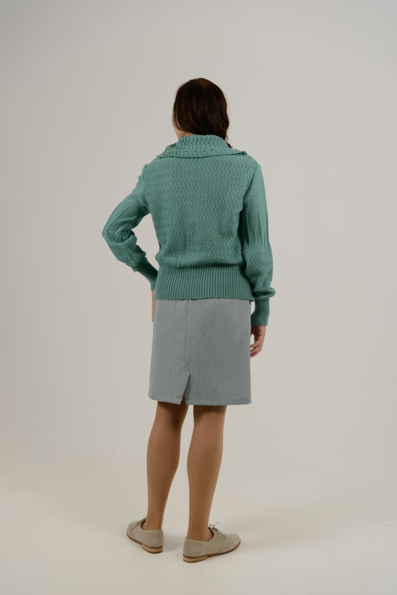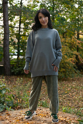 Описание: Джемпер с длинным рукавом, большой воротник, трикотаж, внизу резина.