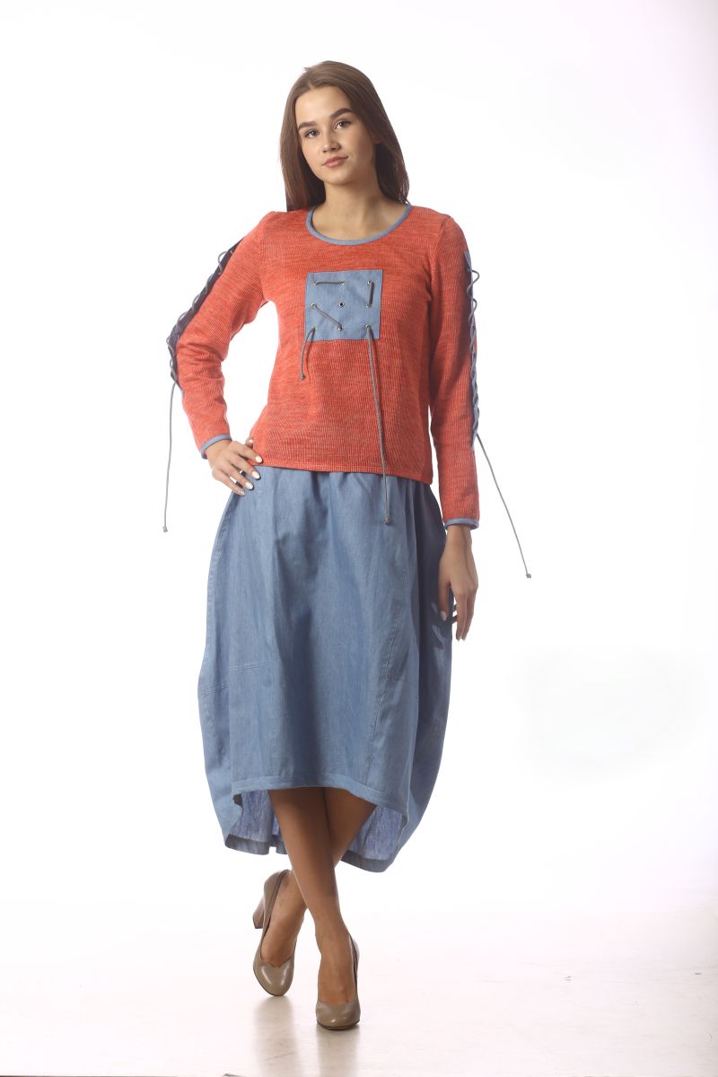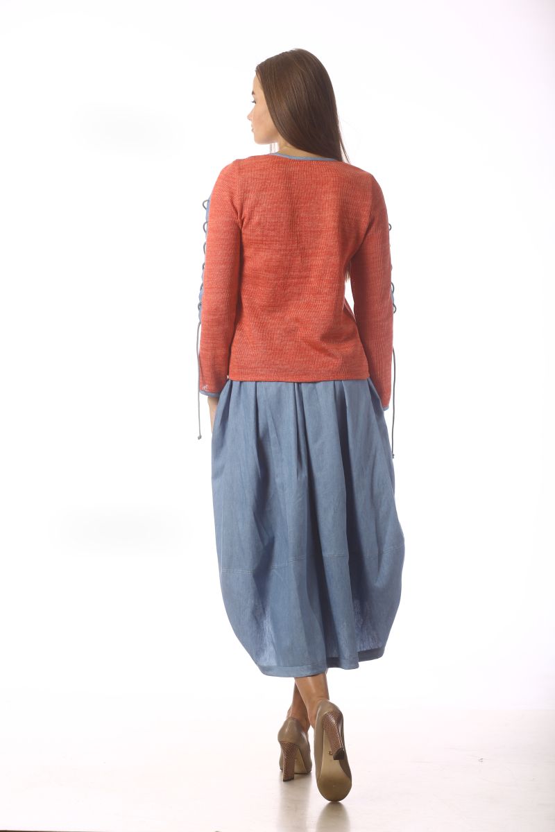 Описание: Джемпер, отделка ткань лен, трикотаж, длина 55см, рукав 59см.