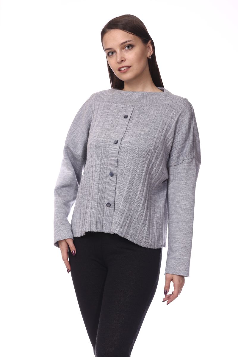 Описание: Джемпер плиссе, отделка пуговицы, трикотаж меланж