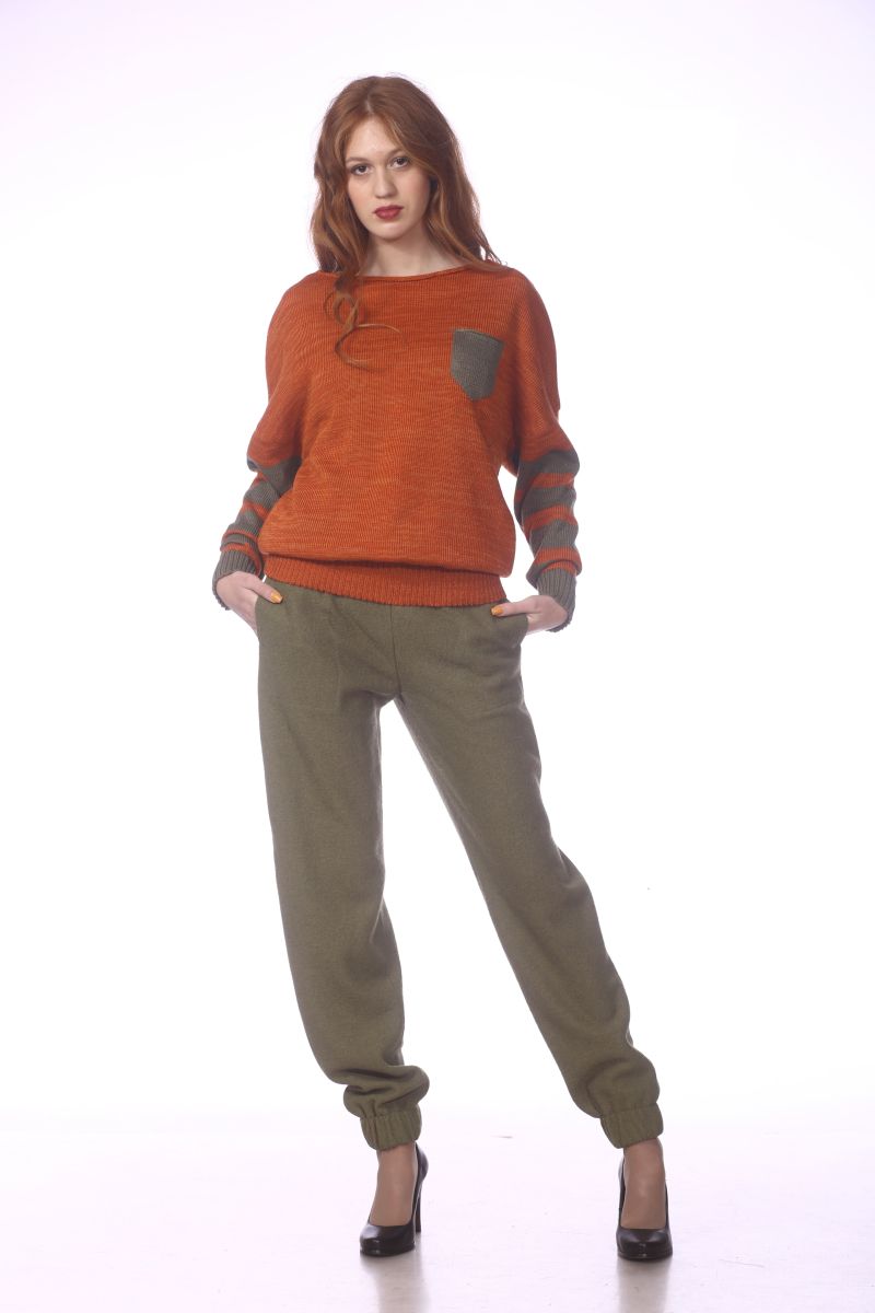Описание: Джемпер, линия плеча спущена, карман, трикотаж