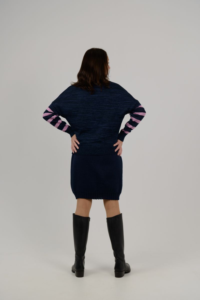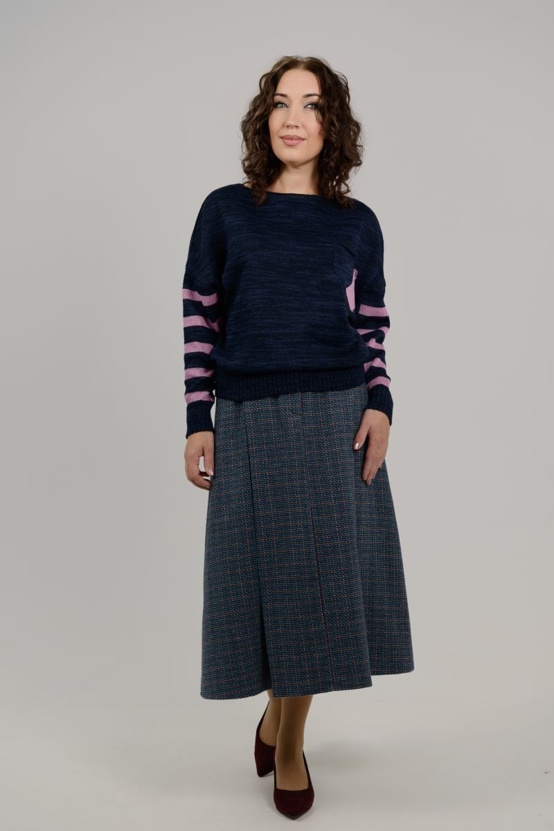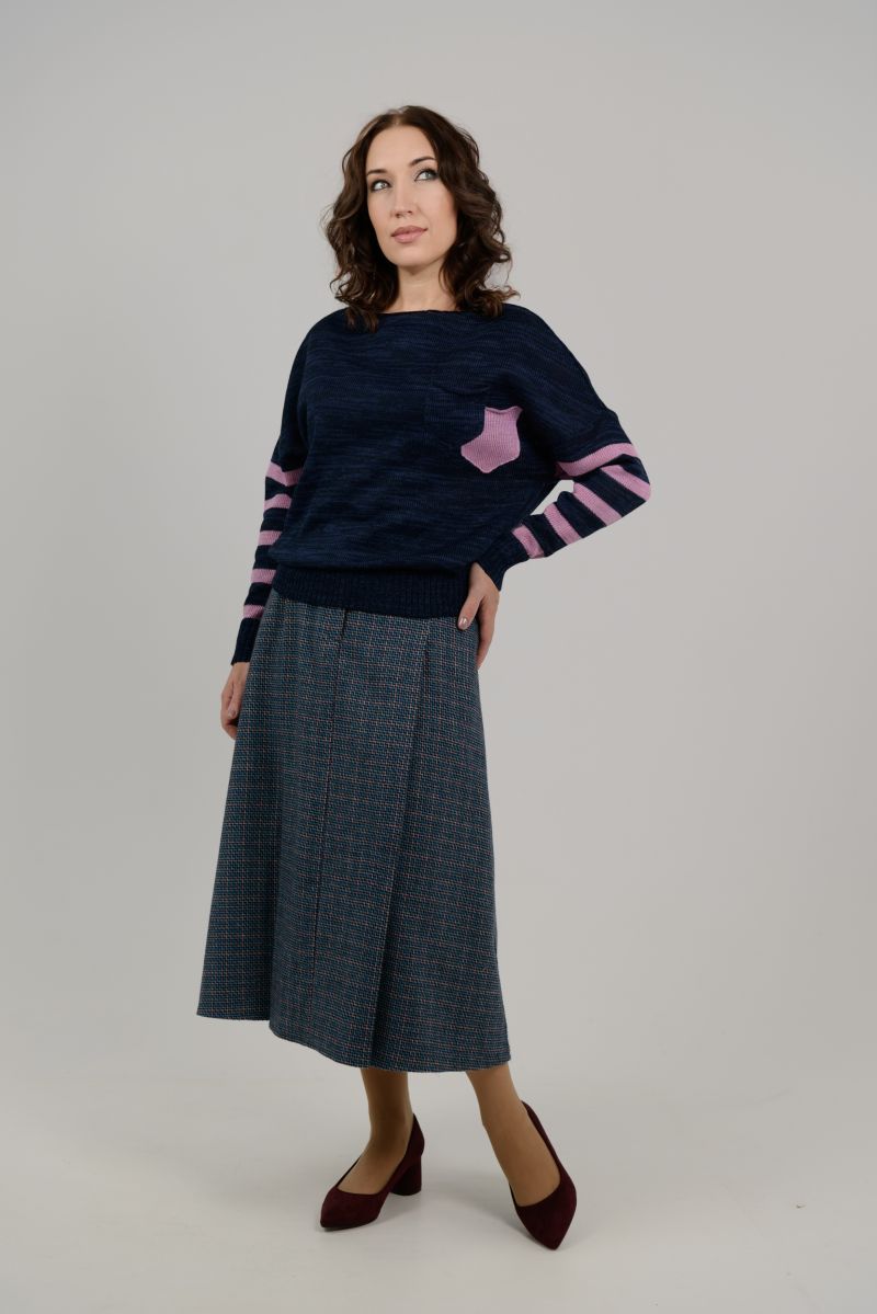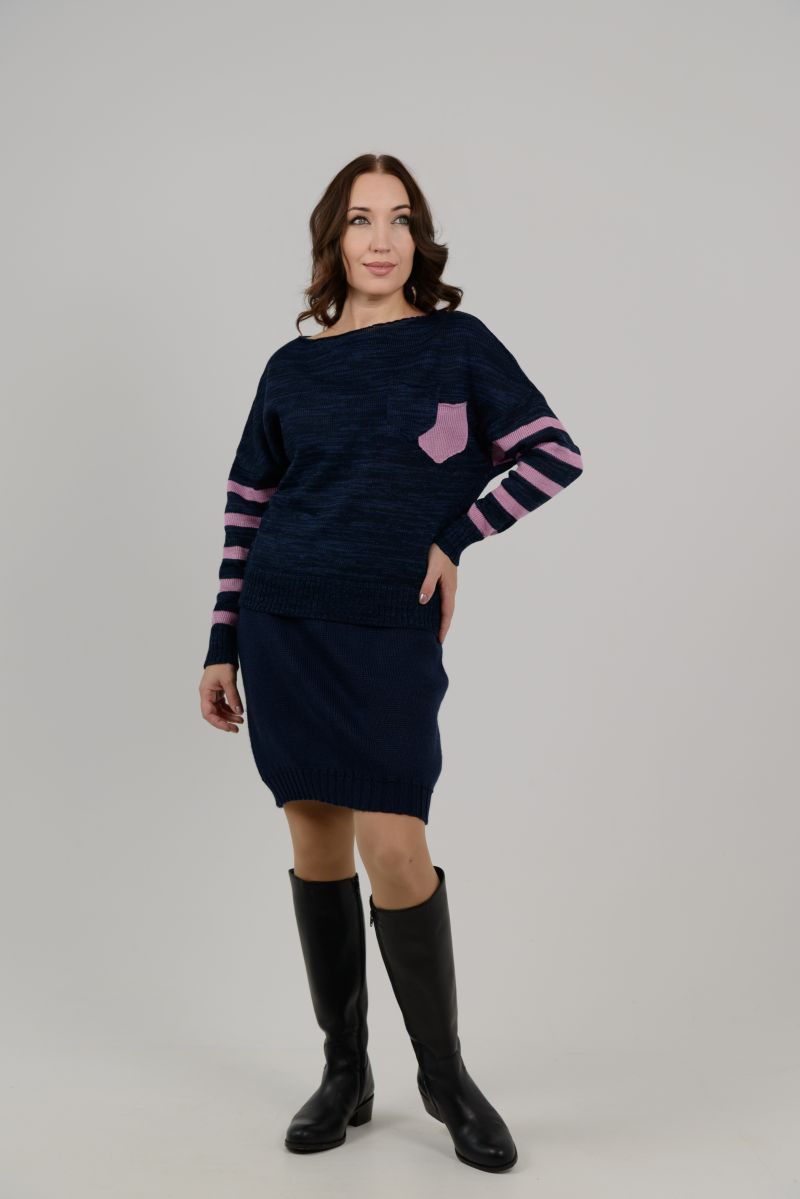 Описание: Джемпер с двумя небольшими карманами, линия плеча спущена, трикотаж.