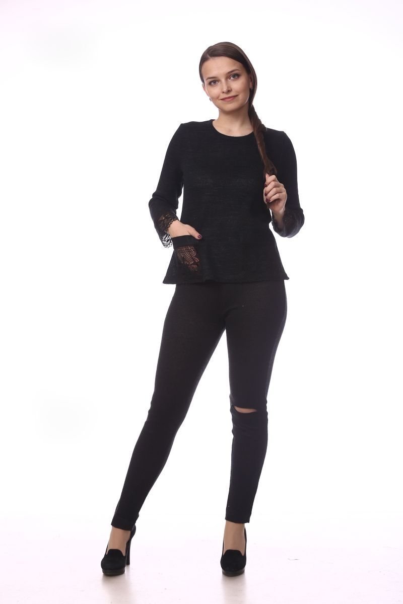 Описание: Джемпер с карманами кружево, трикотаж, длина 55см, рукав 59см.