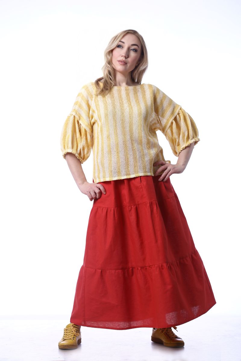 Описание: Джемпер с рукавом на сборке, трикотаж полосы
