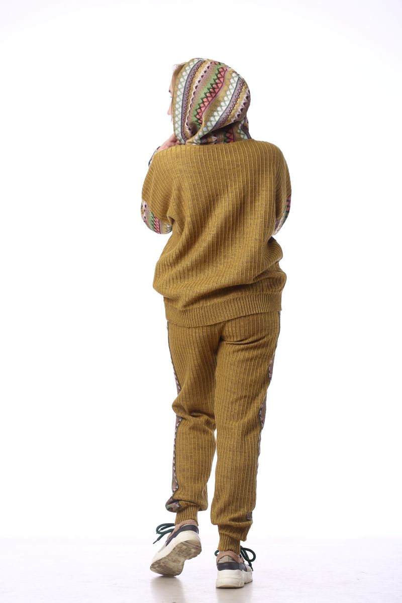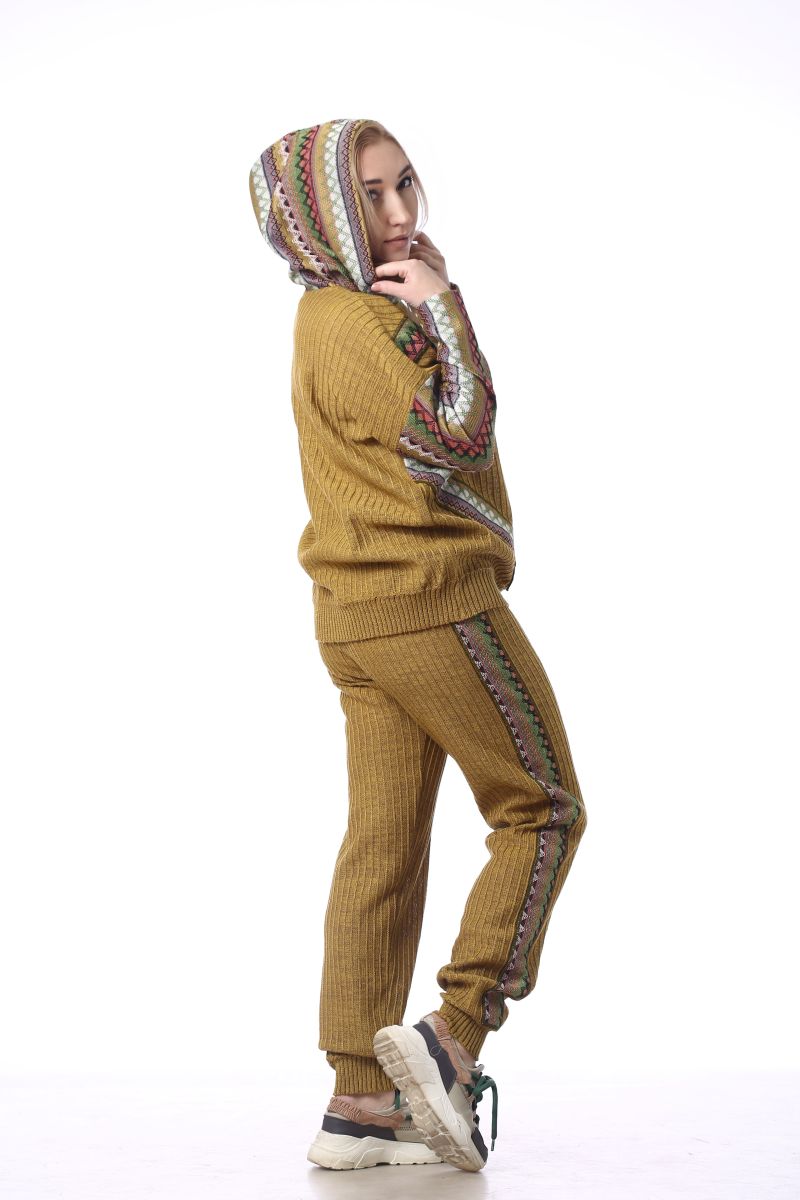 Описание: Джемпер с капюшоном, трикотаж с тканью, длина по спинке 60см, рукав с плечом 61см.