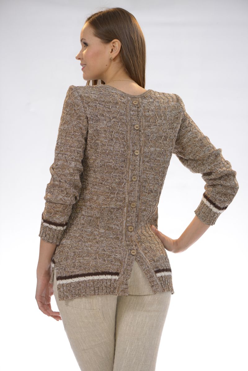 Описание: Джемпер с отделкой, по бокам разрезы, на спинке пуговицы, трикотаж