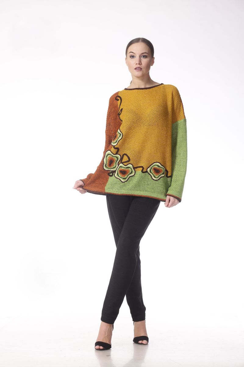 Описание: Джемпер, линия плеча спущена, отделка, трикотаж
