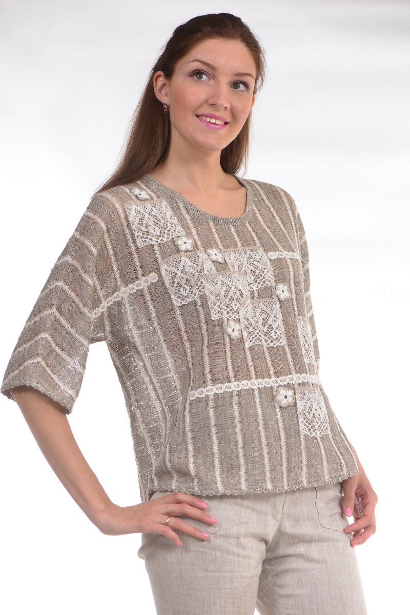Описание: Джемпер, линия плеча спущенная, отделка кружево, трикотаж