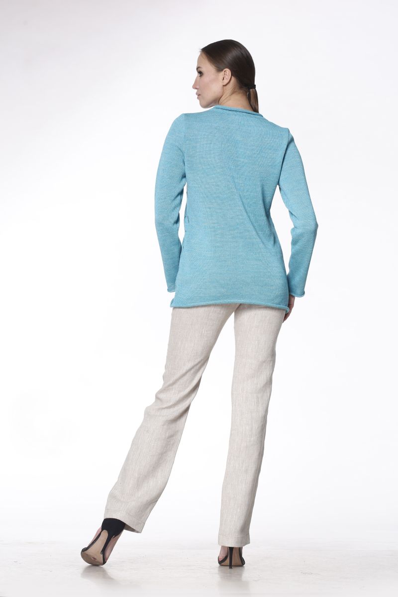 Описание: Джемпер с закручивающимся краем, воротник валик, трикотаж с ажуром