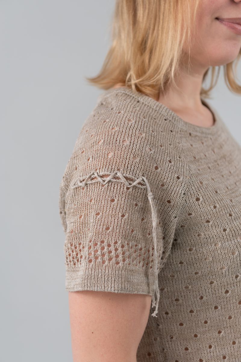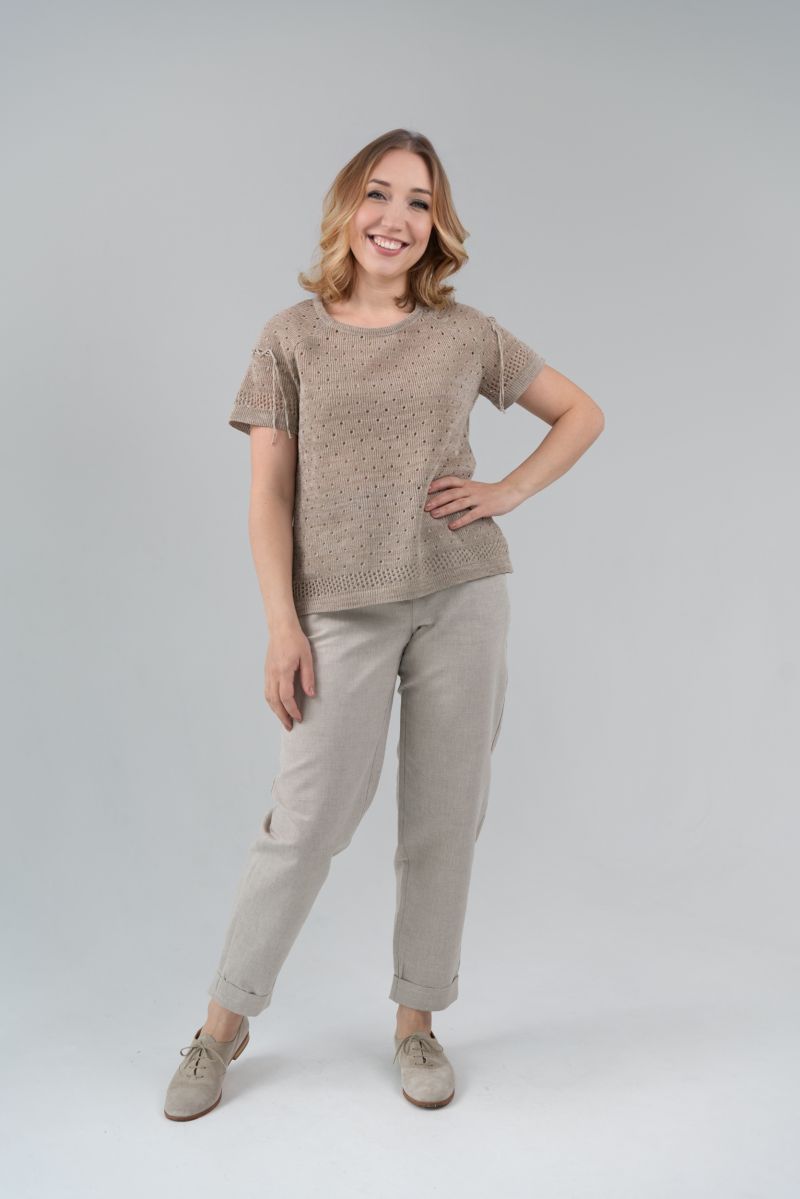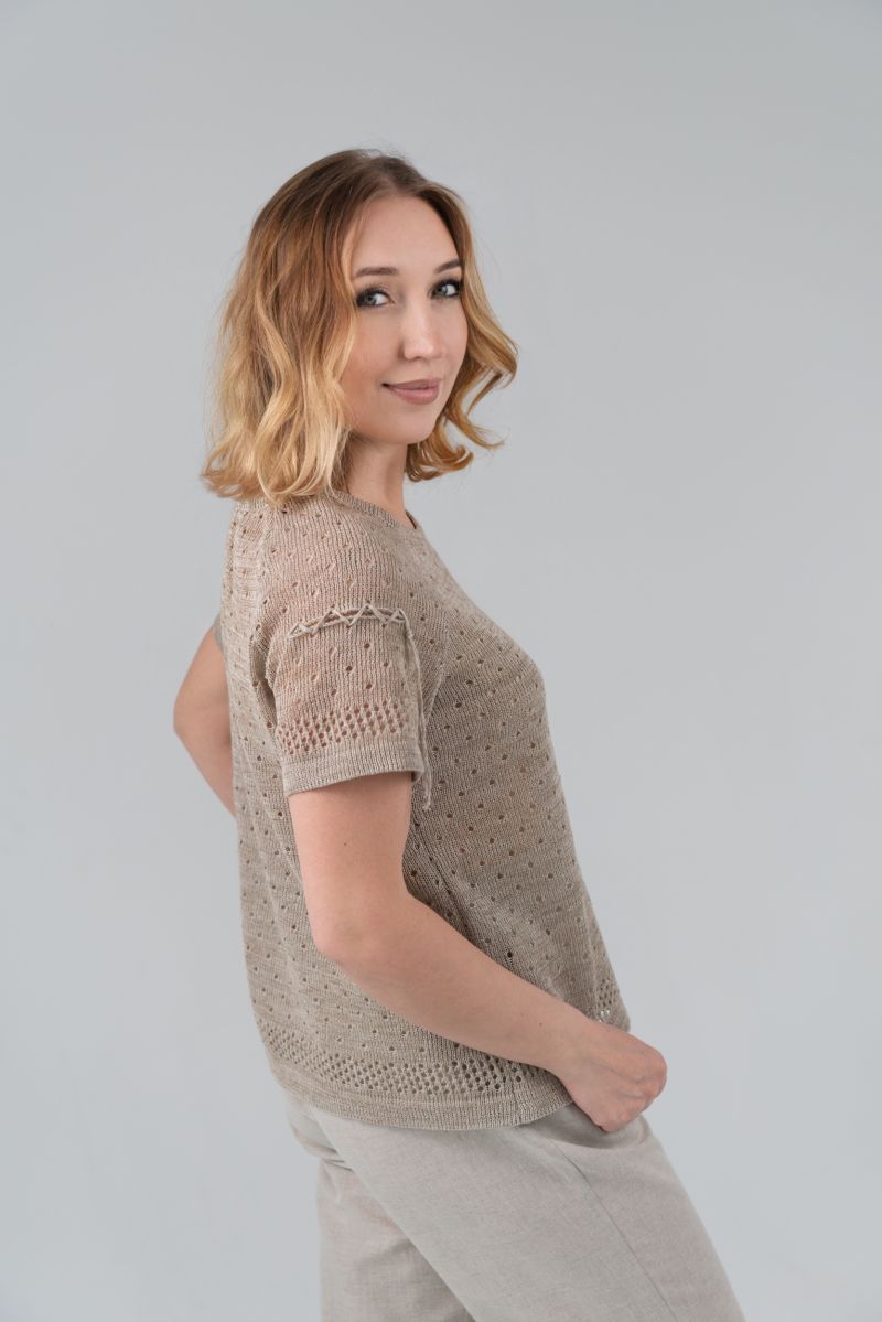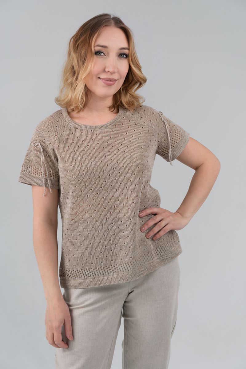 Описание: Джемпер с коротким рукавом, отделка, трикотаж с ажуром