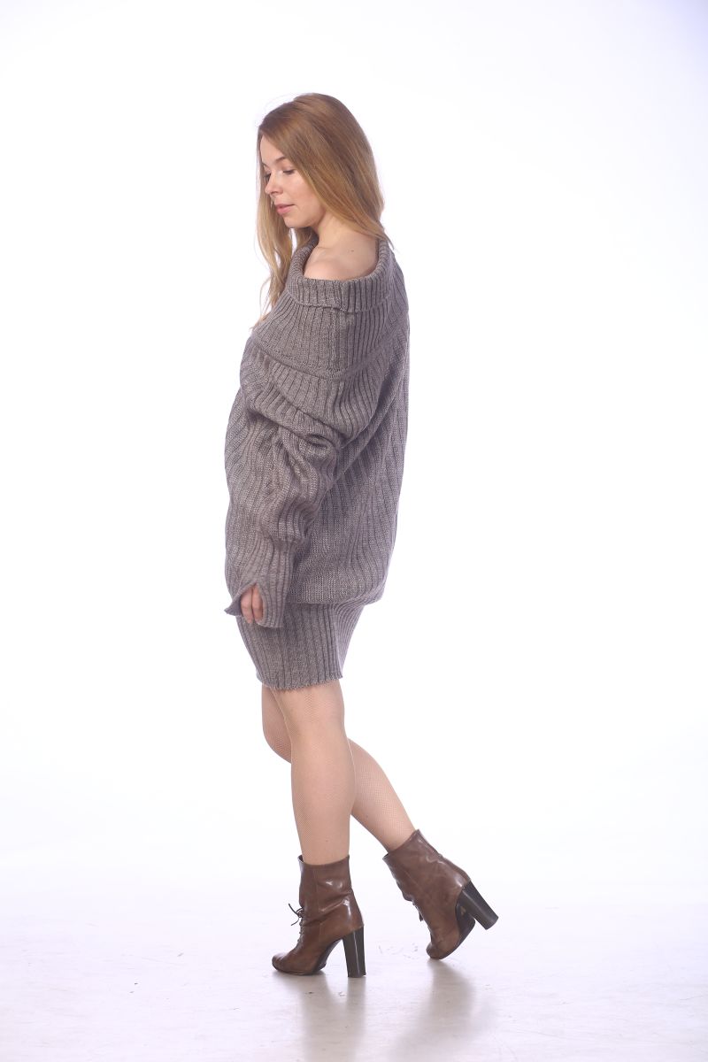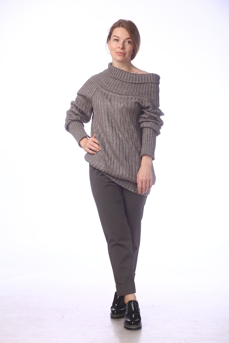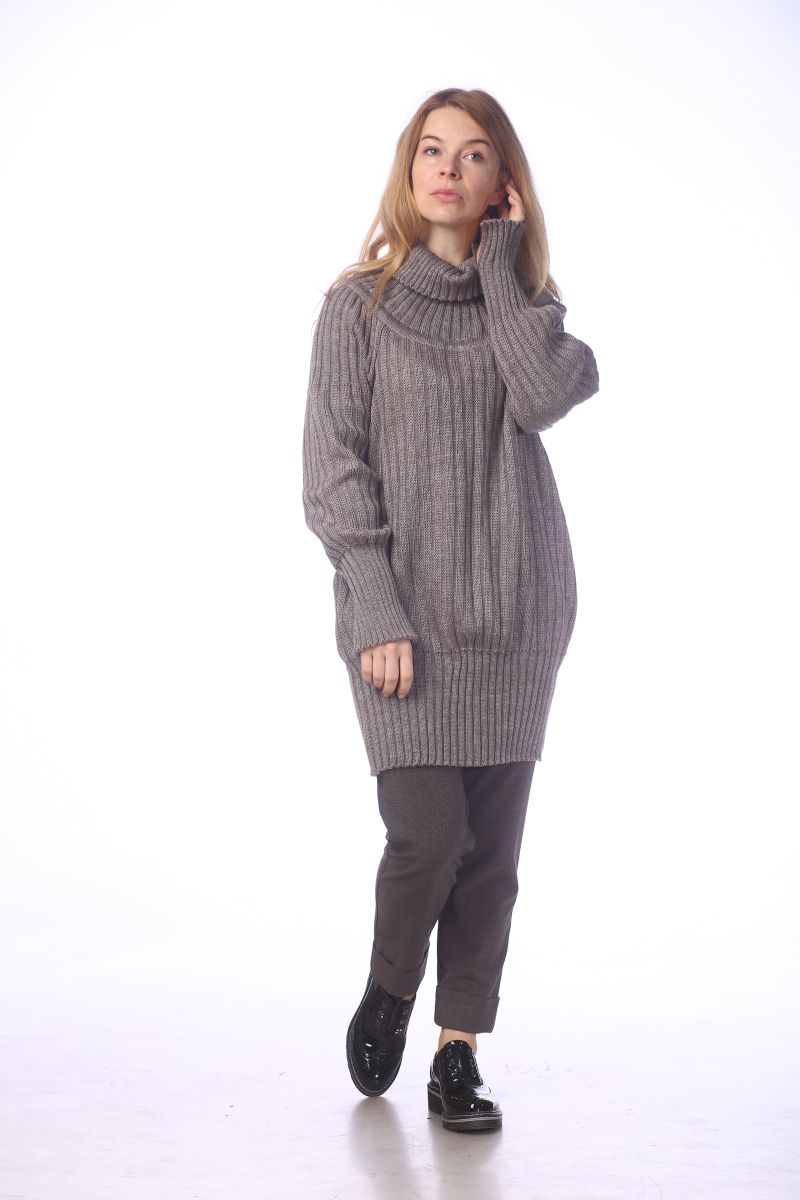 Описание: Джемпер длинный с большим воротником, рукав реглан, трикотаж внизу резина