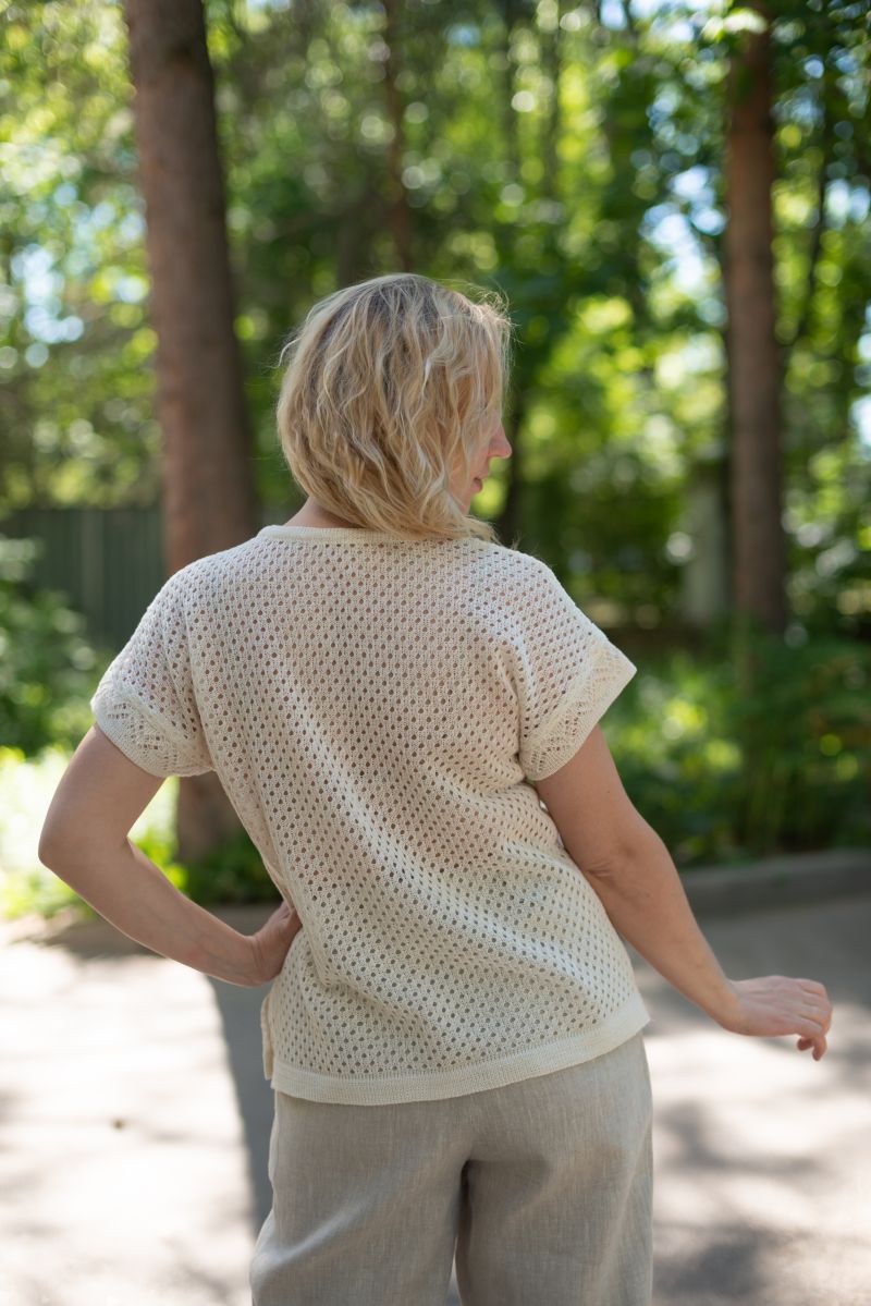 Описание: Джемпер, линия плеча спущена, по бокам разрезы, трикотаж с ажуром