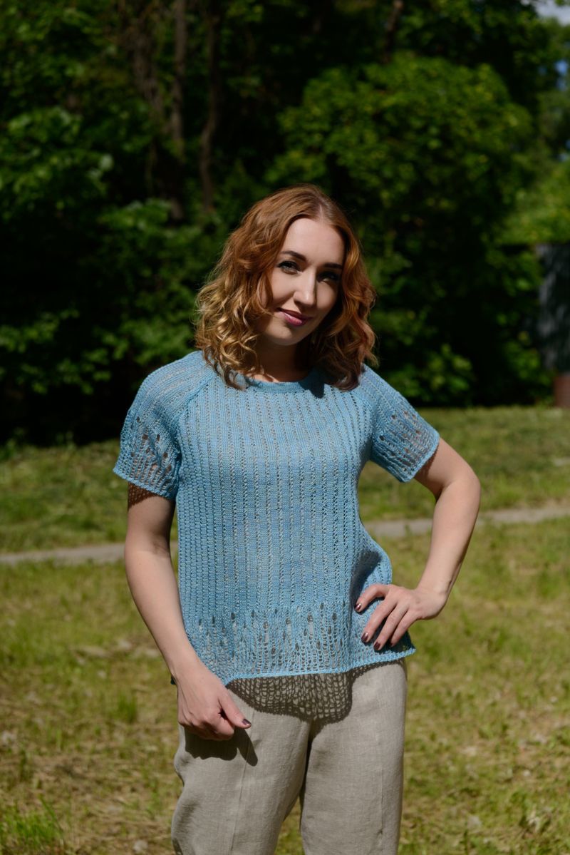 Описание: Джемпер с коротким рукавом реглан, трикотаж