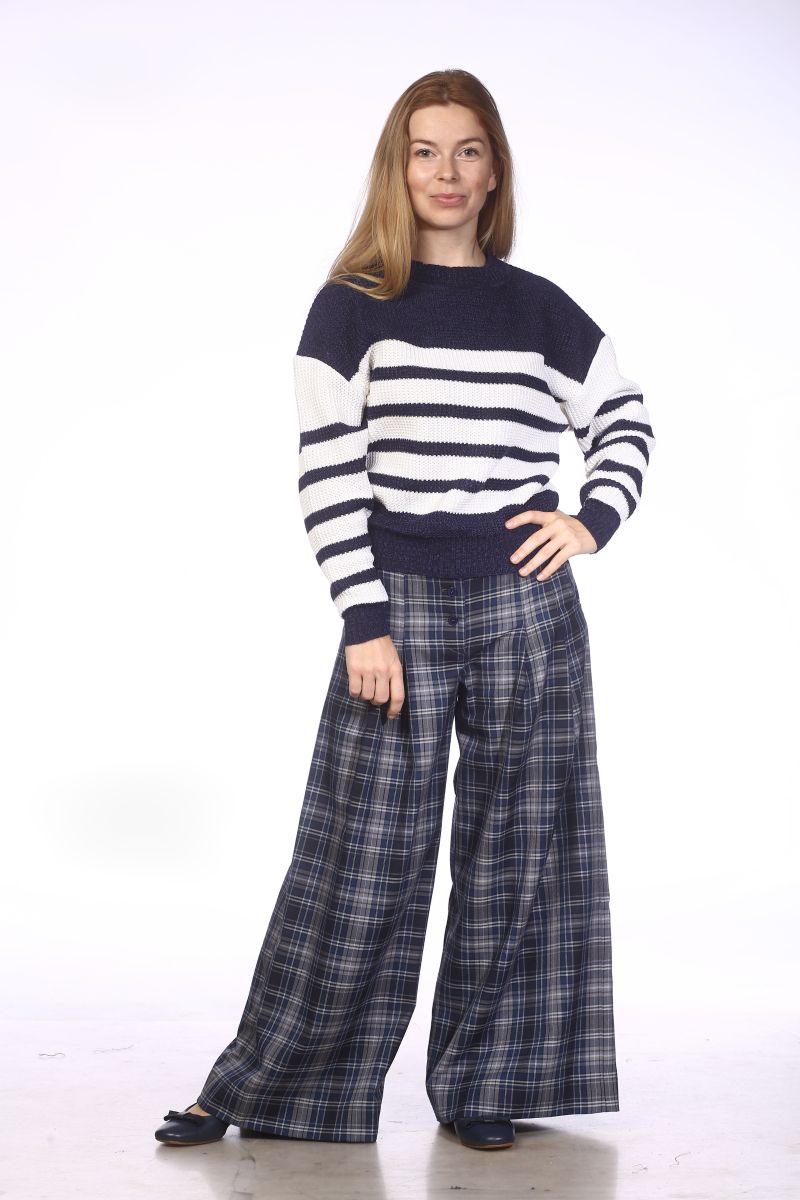 Описание: Джемпер, трикотаж полосы, 42-48 размеры 57см, рукав 50см; 50-54 размеры 60см, рукав 50см.