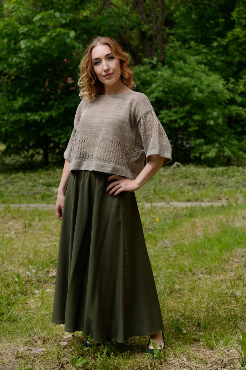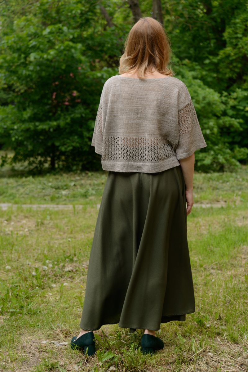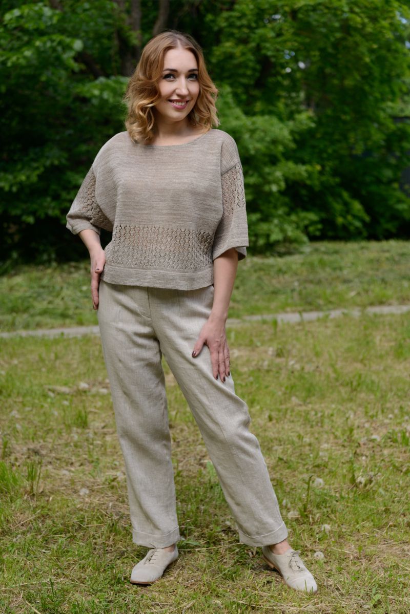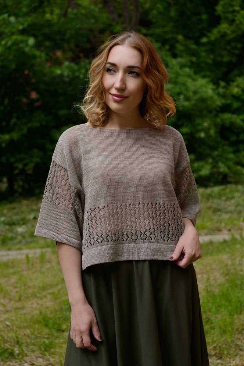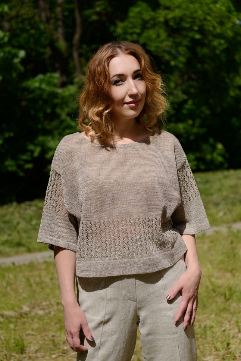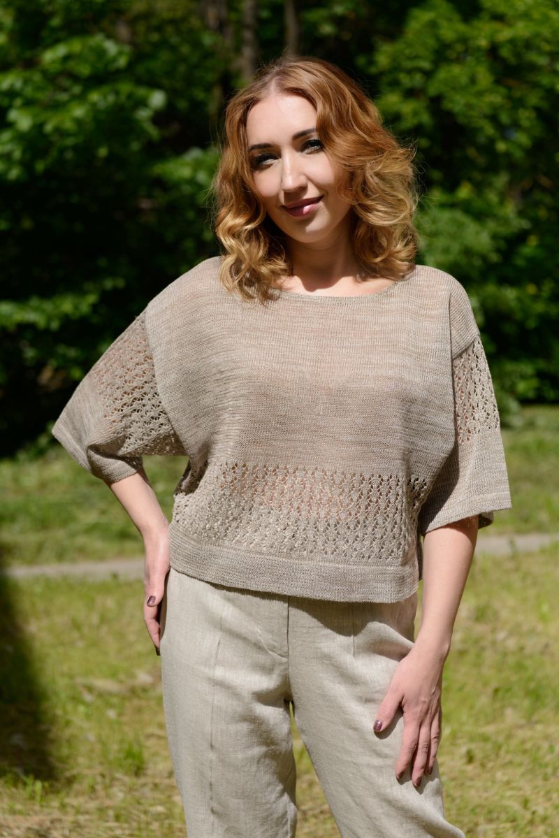 Описание: Джемпер, линия плеча спущена, трикотаж с ажуром.