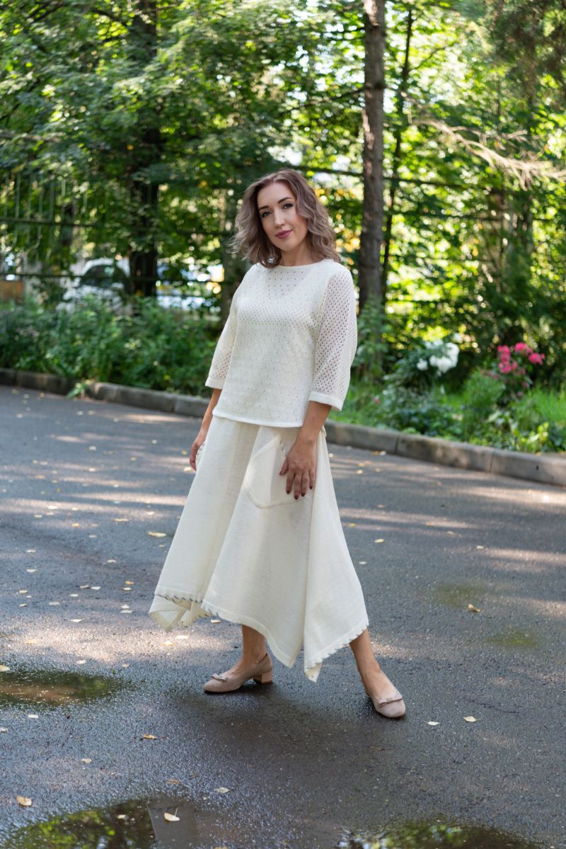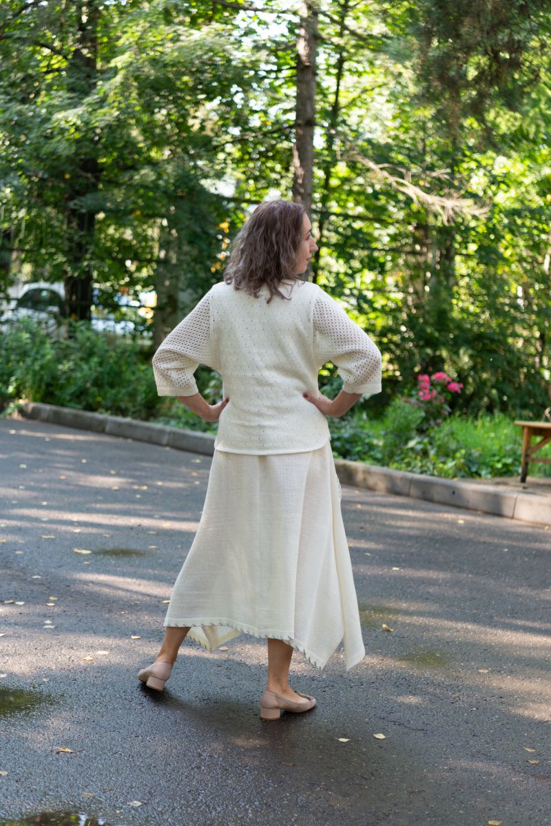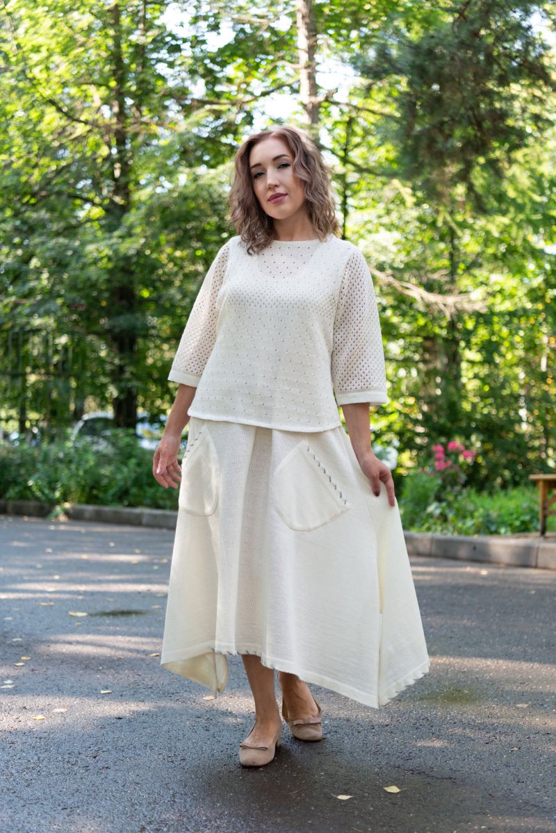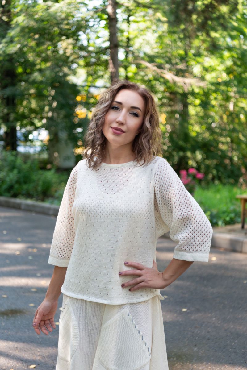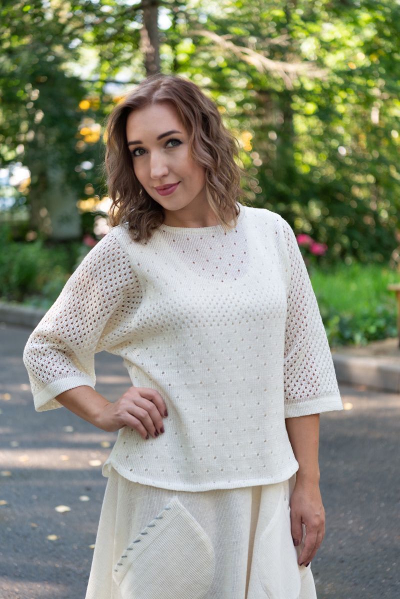 Описание: Джемпер, трикотаж с ажуром, 46 размер 59см, рукав 41см; 52 размер 60см, рукав 41см.