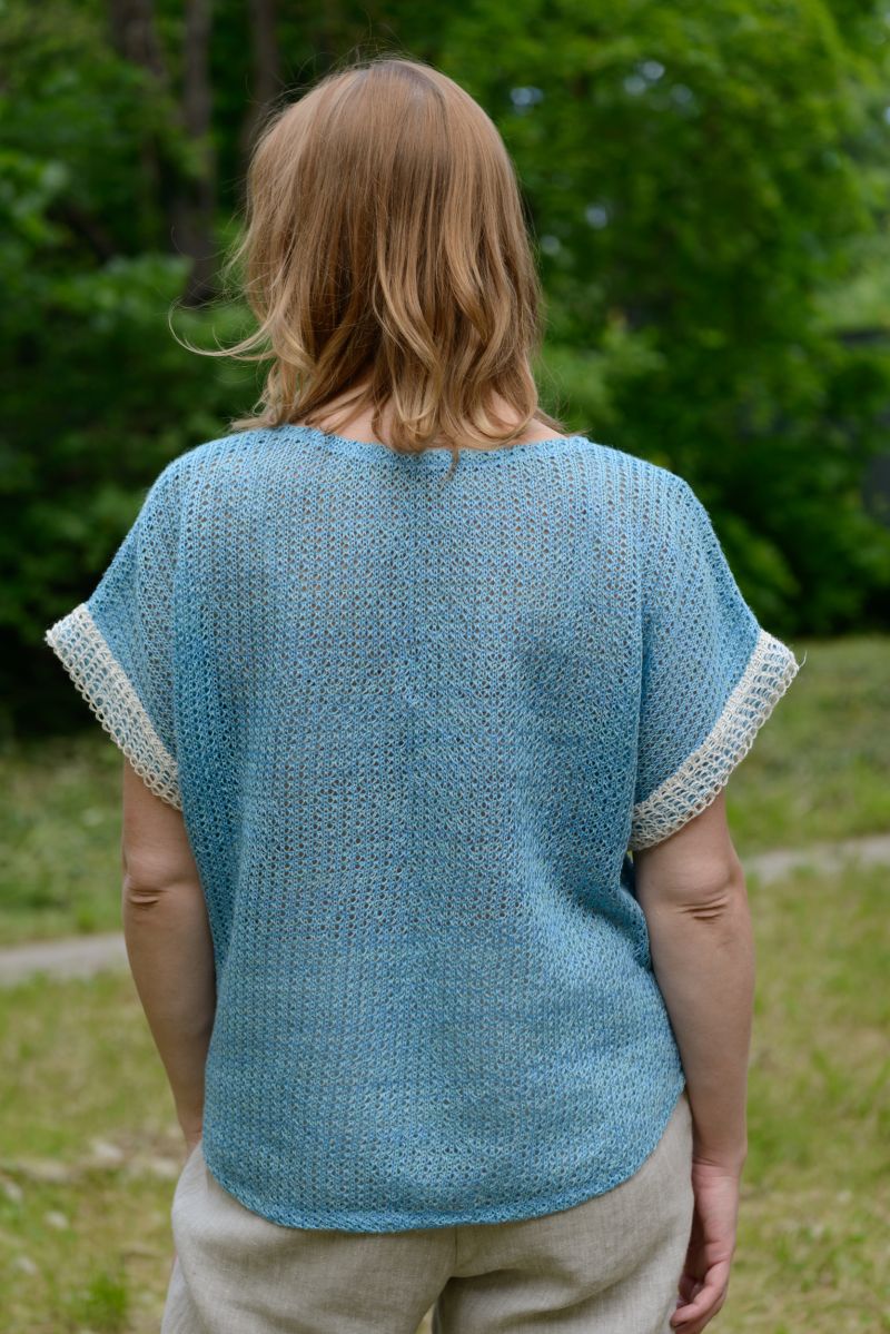 Описание: Джемпер-майка, с закругленной линией низ, линия плеча спущена, отделка, трикотаж.