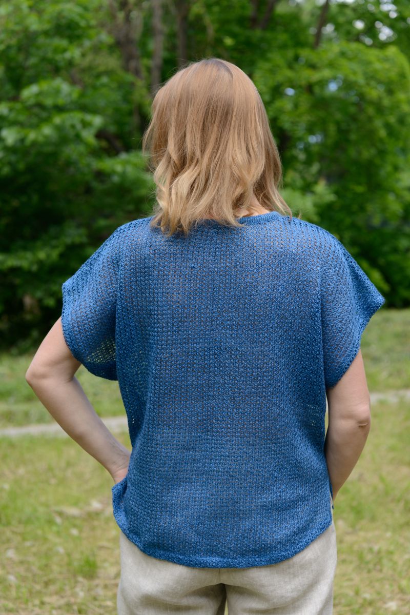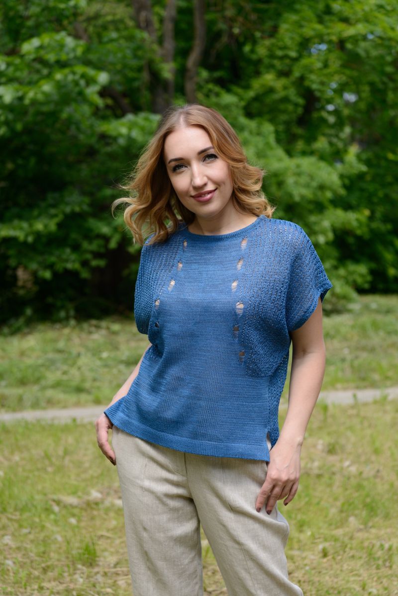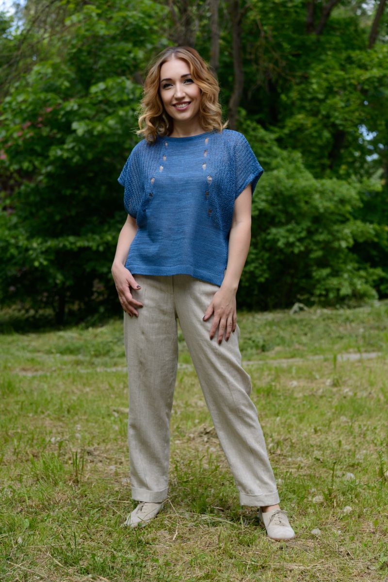 Описание: Джемпер-майка, линия плеча спущена, низ спинки закругленный, по бокам разрезы, трикотаж.