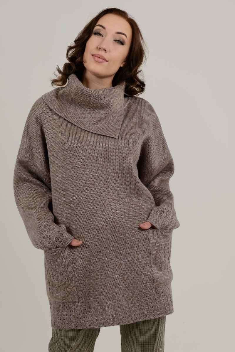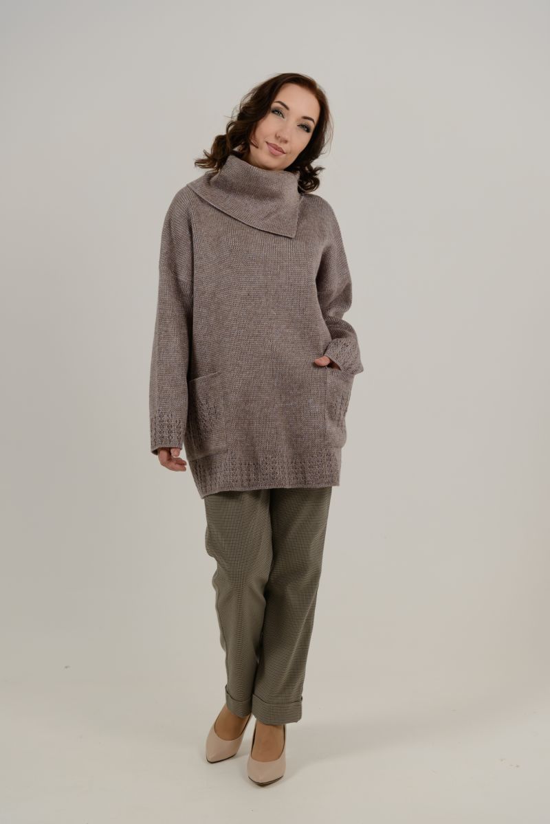 Описание: Джемпер-туника, свободного силуэта, большой воротник, карманы, плотный трикотаж.