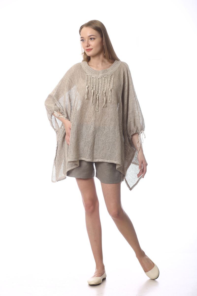 Описание: Туника свободного силуэта, отделка, трикотаж, длина 61см, рукав с плечом 56см.