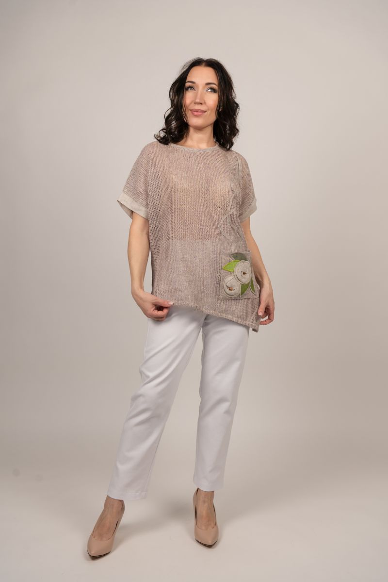 Описание: Туника с карманом, отделка ткань лен, трикотаж.