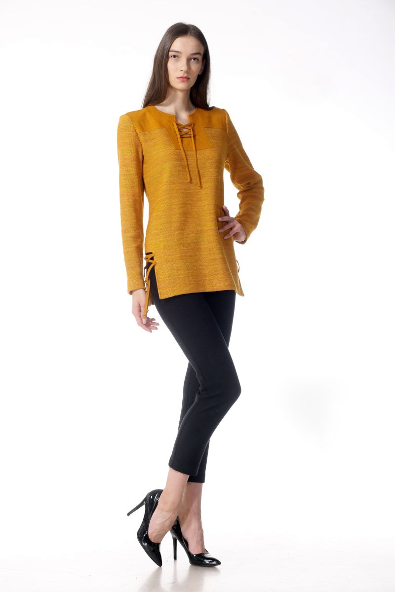 Описание: Туника с длинным рукавом, разрезы, кокетка ткань лен, трикотаж меланж