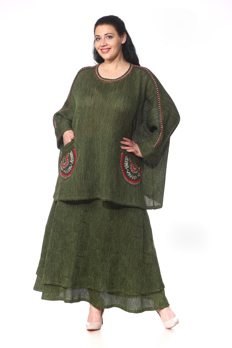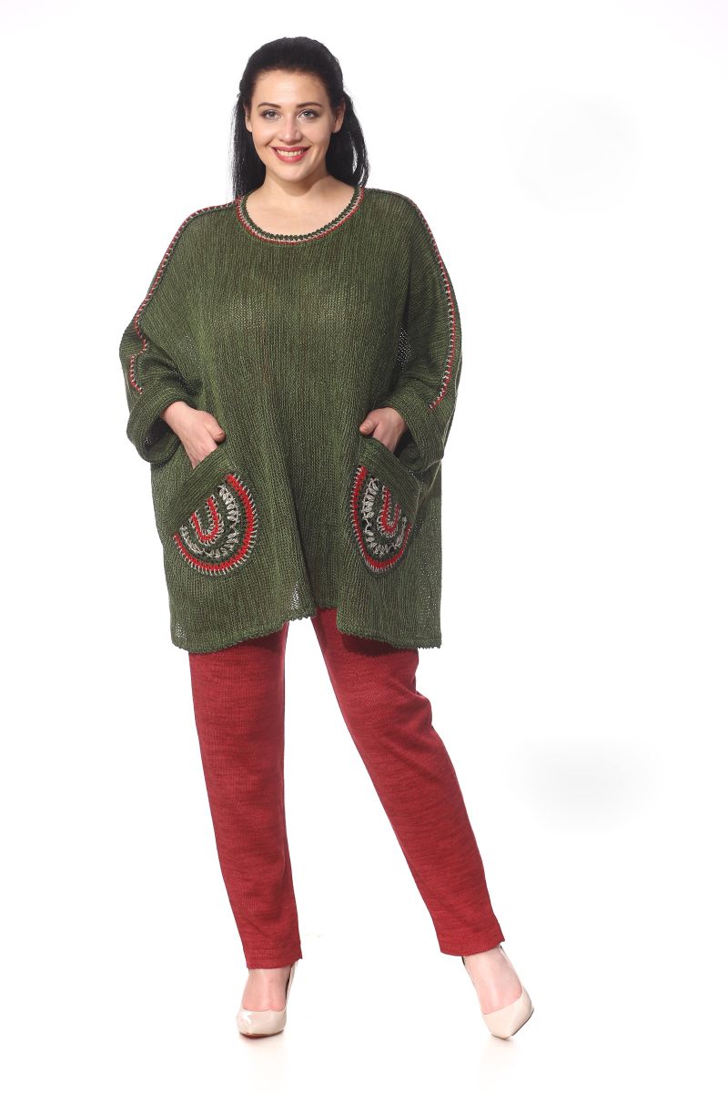 Описание: Туника свободного силуэта, с карманами, отделка крючок, трикотаж, 58 размер 75см, рукав 56см.