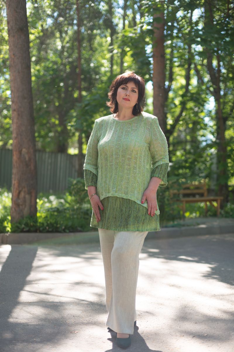 Описание: Туника, трикотаж, 58 размер 77см, рукав 44см.